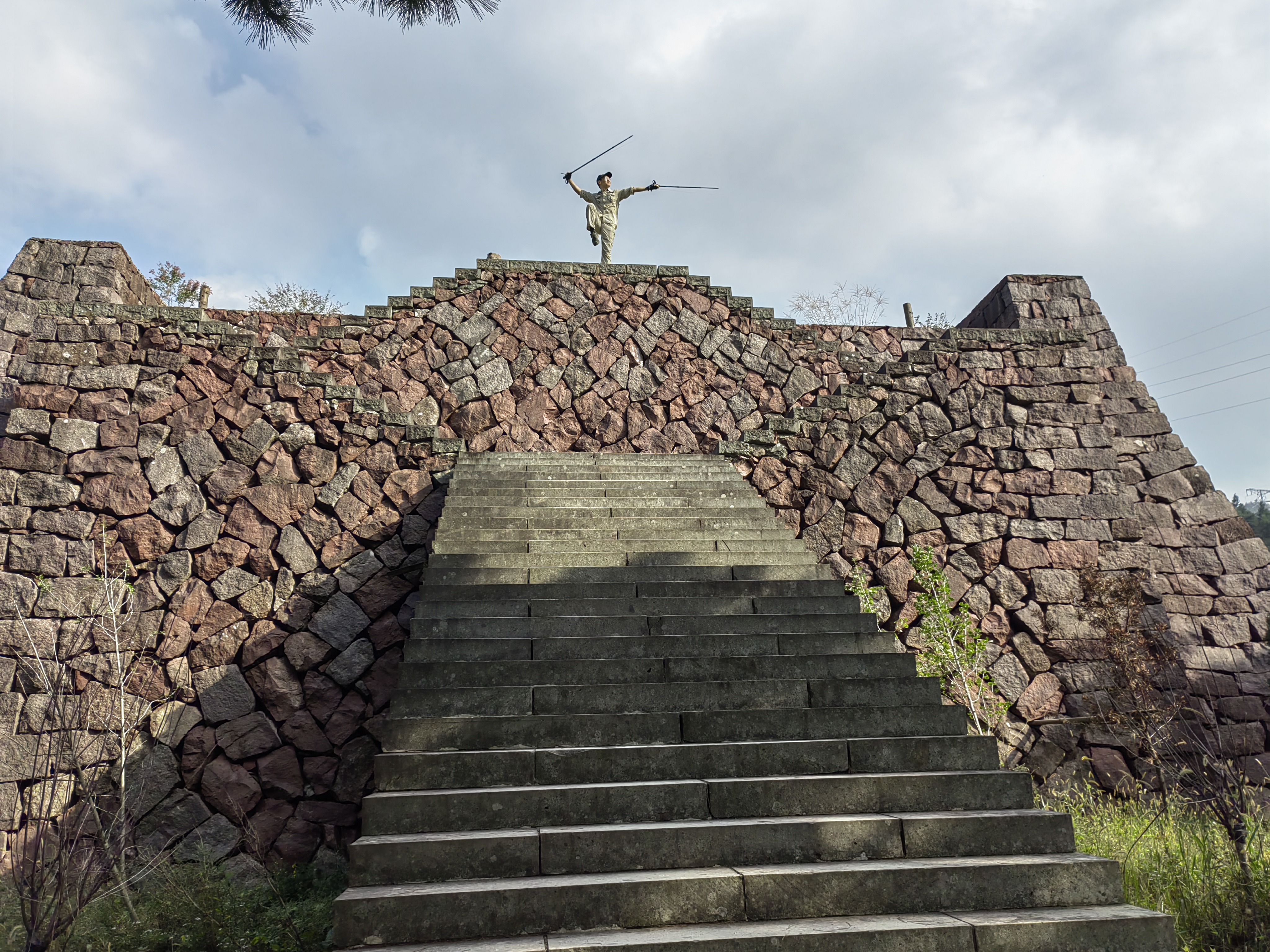 两公里后,来到南田村,村口有个湖,湖边上大概100个台阶上面,有个点将台,气势宏伟,登上去视野开阔,镇守一方,想比在古代是个重要的关口。