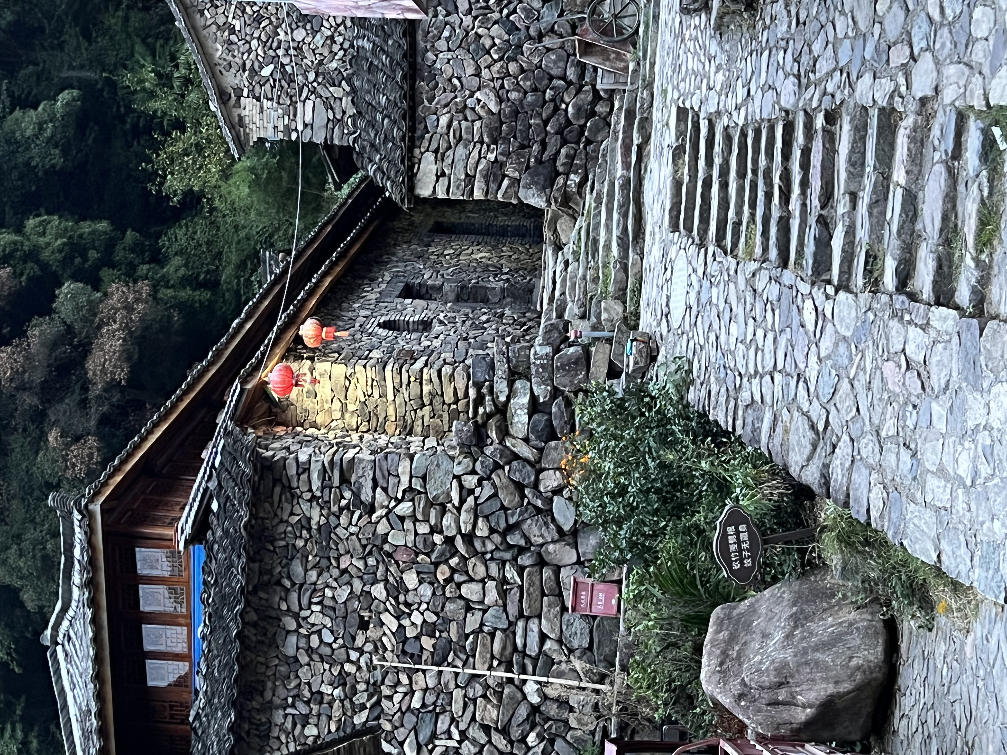 岩下石头村,据下榻的普通岭农家老板介绍,该村始建于1401年(明朝初年),然后一直延续到现在,历经600多年,一直都是一个朱姓的大家族,村口就是朱氏祠堂,规模宏大,整个村子据老板所说有300多户人家,外墙基本都是石头砌成的,这也很好理解,因为石头是当地的特产,河道里取之不尽,不仅仅是房子,村子里几乎所有的道路都是用石头铺盖的,这就形成了该村的最大特色,也是大家前来旅游的主要目的。