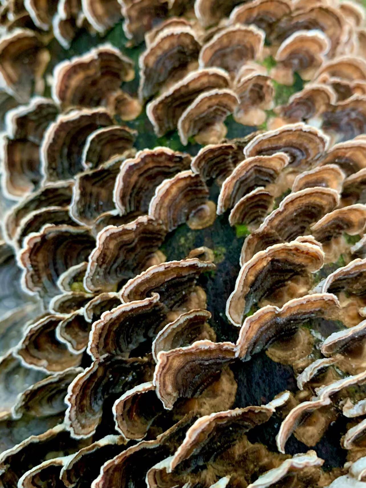 下山的路是小路,大多是在草丛里,估计只有户外的人才从这里走过,也看不到什么风景,相对比较枯燥无谓,但是善于发现的眼睛总能找到惊醒,走在队伍后面的晓敏是个细腻的姑娘,不仅善于发现惊喜,拍摄的花花草草也很很好看,一个横在路上且长满了蘑菇的树木,被其拍得非常有艺术感。她还在路边发现了一个白色的山鸡毛。来自甘肃的姑娘在路上为大家唱歌,还乐于接受大家的点歌,给大家的旅途来带了不少欢乐。
