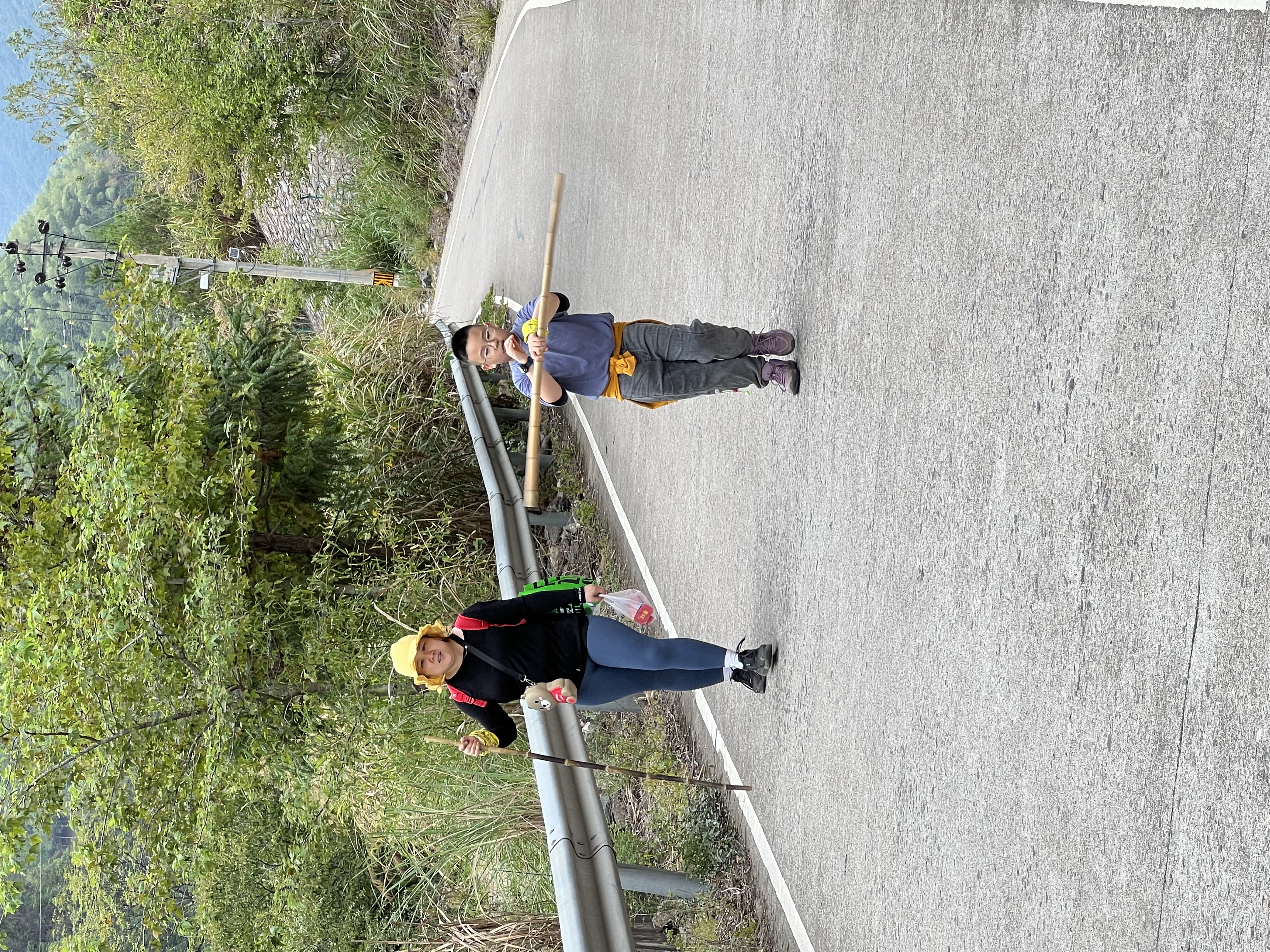 为避免在枯燥的水泥公路上行走,先用6辆面包车,经过20分钟把我们送到徒步的山脚下,好处是少走了不少枯燥的路程,缺点是徒步开始时,上来就开始爬升,且是连续的2公里爬升,体力较好的我也表示很累,尤其是当天还有点小闷热。