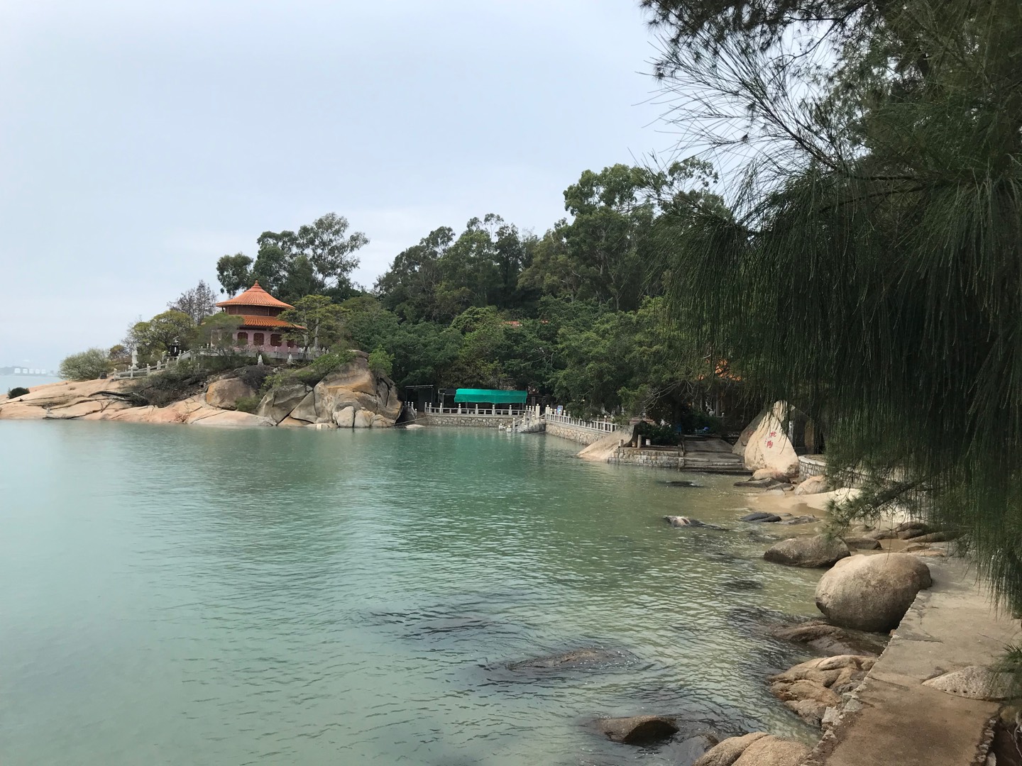 我沿着浅滩,从这头,走向另外的那头。俗话说,常在河边走,难免不湿鞋。如今我走在东门屿的海滩上,却是一点儿也不担心湿了鞋。因为,此时此刻,海,却不见一丝半点的浪花儿,仿佛深山里的湖泊般,如此的平静,如此的波澜不惊。