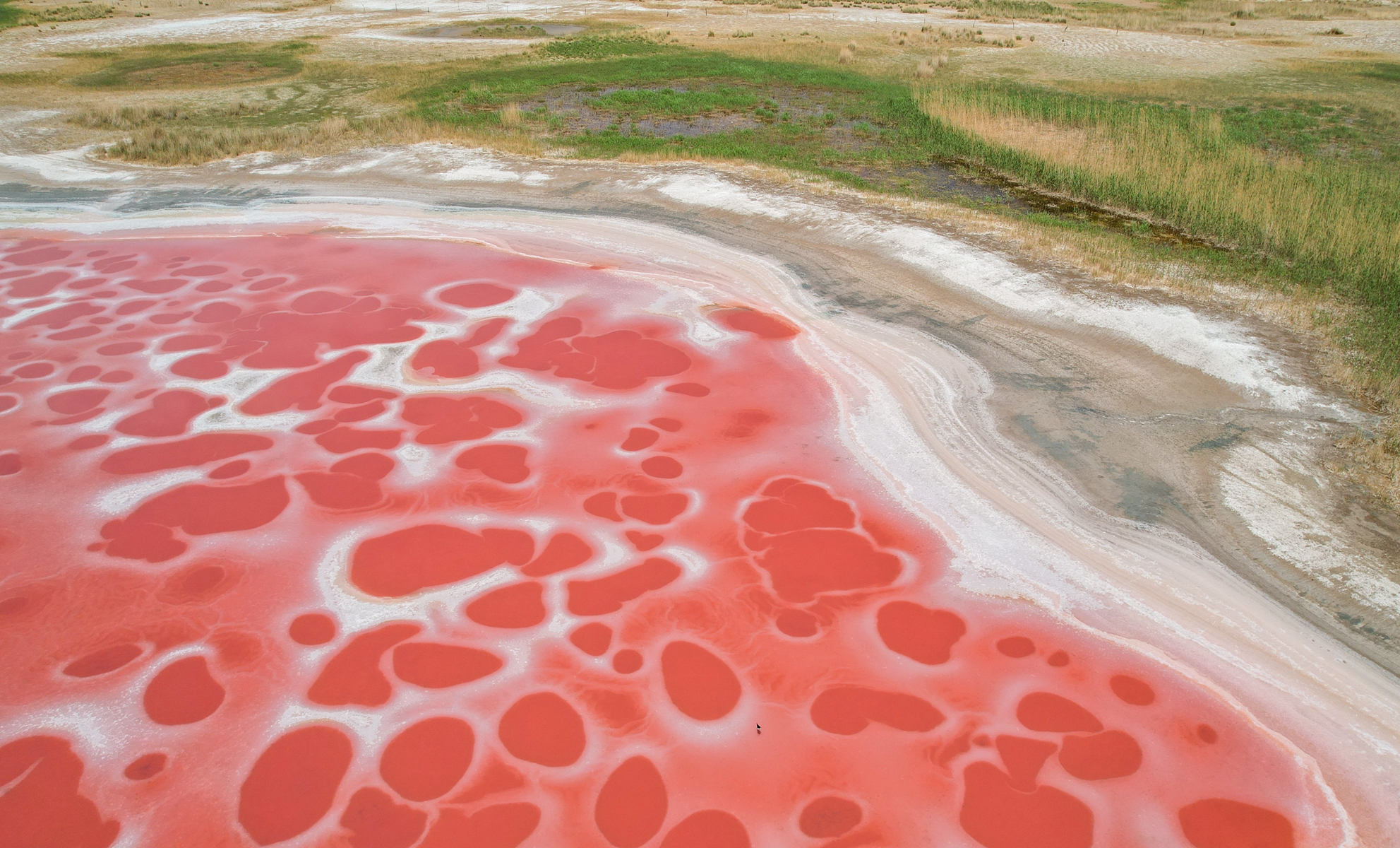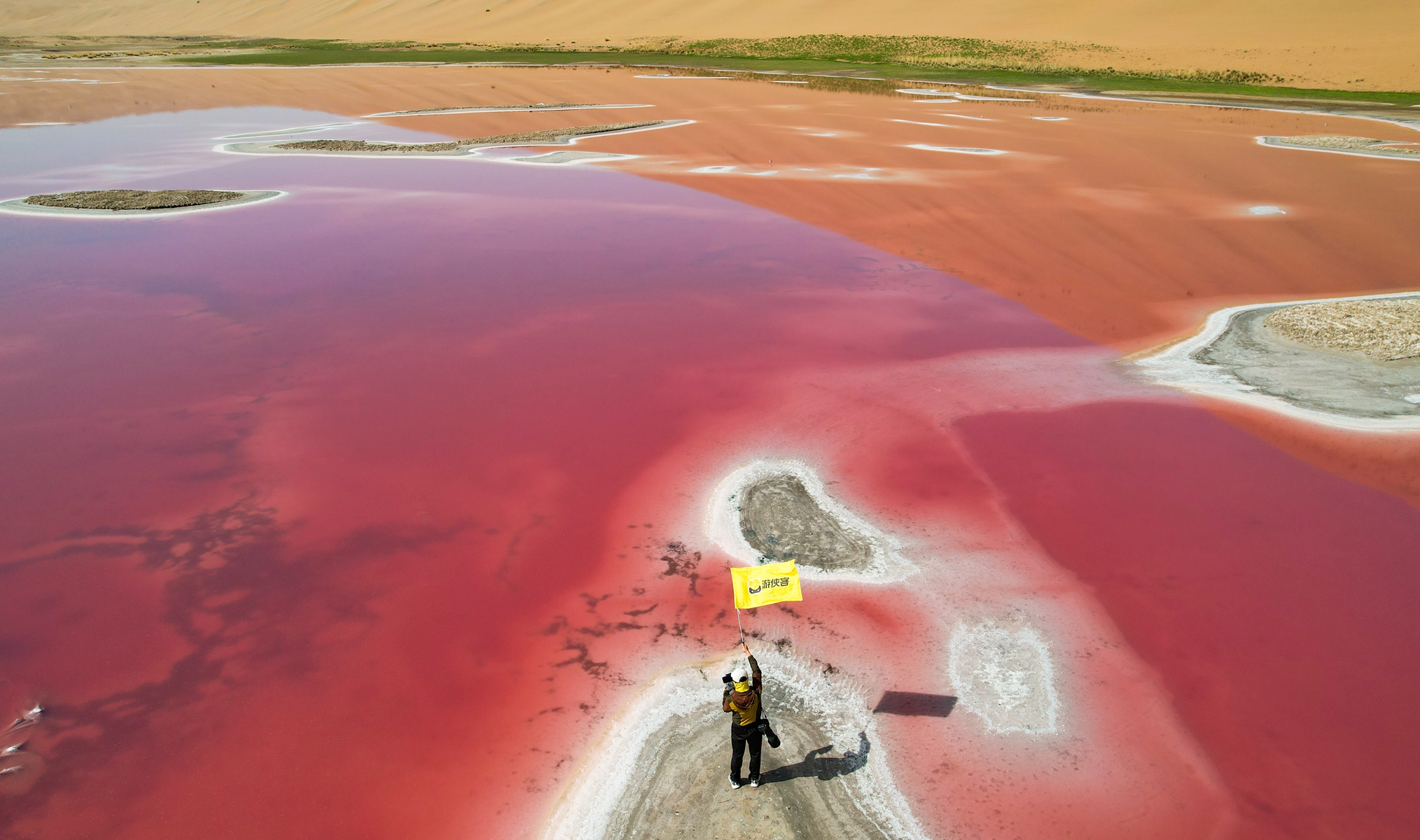 巴丹吉林镇的沙漠,其实很久以前,大概6年前就已经去过了,那个时候还很艰苦,路比较坚辛。经常在路途中吐。睡的地方,白天在太阳的照晒下非常的闷热。吃的就更差了,然而几年过去了,沙漠深处的各个海子的周边,但凡有客栈的地方,条件都好起来了。都是城市商务标间的标准。空调,洗手间都是标配了。线路也得到了优化,除了我心心念的庙海子。拍到了更多的红海子。真的感叹,这真是人间的调色板,被谁打翻在广袤的沙漠深处,然而这些红色的海子,来由是什么呢?湖里的颜色有的是湖泊中含有红色色素的卤虫大量生长有关。卤虫以盐沼为食,能够忍耐高盐度,随着水体盐度的升高,卤虫体内的虾青素也不断增多,体色就会变成红色,从而使得整个湖泊呈现粉红色。