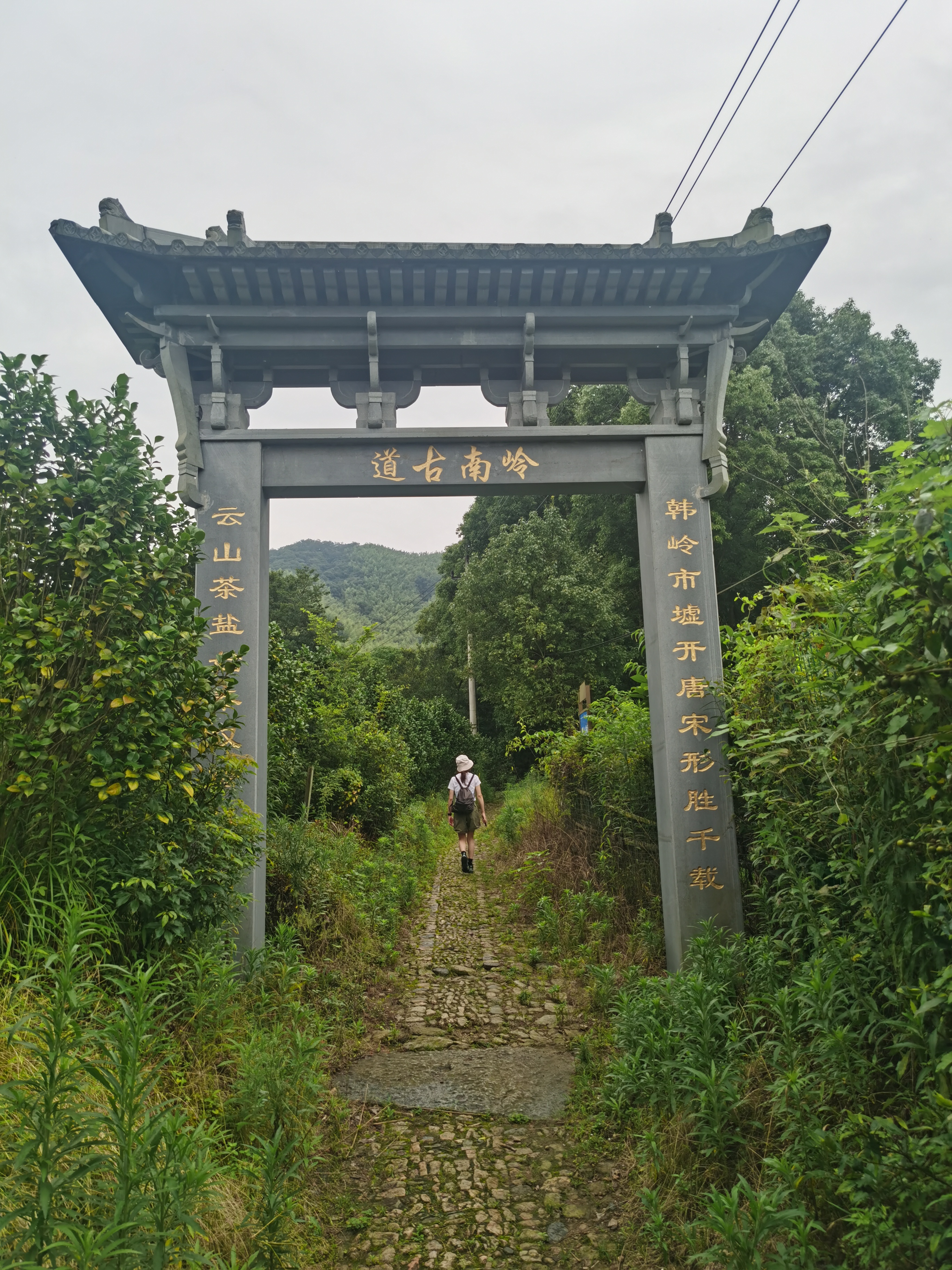 过了云南亭,就是岭南古道(传说韩岭老街是由蜈蚣所变,岭南古道则是神蛇幻化出的项脊)。路口有株大树,底部已空,仿佛一个神龛,花鸟虫鱼、山川日月……都成了可供奉的偶像,却仍不够,还要邀上各路神佛,比如莲座上的“南山观音”。此时,山林里的闷热如同一张捕蝇纸,牢牢地粘住无力挣扎的我们,我们的汗水不是泉涌就是井喷。一切愁烦若也能如此挥洒,那该多好,灵魂总比肉身更为粘腻,爬多少座山都无济于事。如此潮湿,蝉鸣却异常干燥,像一拉就断的弦。菌们倒是很开心,白的、灰的、金黄的、粉红的,直直地戳在路面上,也不怕被人踩。有的菌盖上长着莫名其妙的斑纹,有的菌褶多如无数个命运的交叉口,让人更觉世事叵测。只有一种肥肥咧咧的白菌,在苍绿的树干上盘了好几圈,仿佛祥云环绕天际。花儿呢,只有一朵小小的栀子花,蔫头巴脑的;虫子呢,只有一条长长的灯蛾幼虫,神气活现的。总之都是单打独斗,跟这湿热至极的天气。