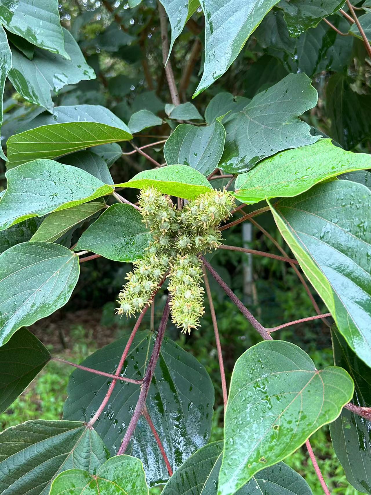 不过,谁又会被捆绑呢?山间的花草仍兀自繁盛。大叶白纸扇随处绽放,顶上有黄色的花冠,边上是白色的苞片,底下层层叠叠,团团簇簇,每一层都有四片大叶子,像有百年根基的世家大族,底气十足。相形之下,藏匿于深草丛中的鸡屎藤俨然小家碧玉,扭捏着开出几朵颇为肉感的花,又担负着如此臭名,怎么都是委屈。博落回和五节芒都蹿得高高的,但前者茎杆挺直,花开明亮,后者无风也垂头弯腰,又是红褐色,长得越盛越显苍茫。蓝宝说,本来要走一条林中小路,但担心有蚂蝗和毛毛虫,还是继续走盘山大道吧。于是一路上只有已经脱胎换骨的蝴蝶和蛾子,就是不见一条毛毛虫,之前那条灯蛾幼虫就得意地窃笑:“哈,我就说我是暗夜中唯一的明灯嘛。”可是野桐突然跳了出来,毛扎扎的,“嘿嘿,像不像毛毛虫?怕不怕呀?”我胡乱地撸了一下,“毛毛虫要像你这么胖,就太惊悚啦!”野茉莉都还含着苞,十分乖巧,最多看起来像一串虫茧,就算开出花来,也是一点都不会撒野的。
