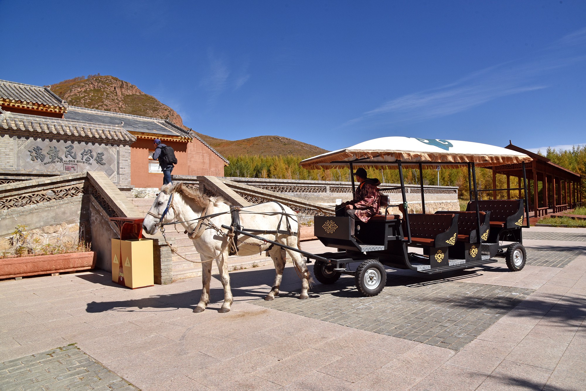 满族民俗展是几间小房子,里面有实物和场景复原展出。丰宁是满族自治县,在当地民间还保留着满族习俗和文化,看上去和东北地区很相似。在丰宁,满族渔猎农耕文明与蒙古族的草原文明融合起来,让七彩森林不仅有多彩的风景,也传承着多样的民俗风情。