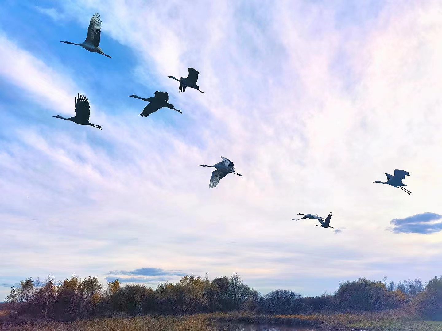大家闲庭漫步在新青湿地,走走停停,一边欣赏美丽的风景,一边谈笑风生。还记得白羽毛的孔雀吗?还有令大家叹为观止的白头鹤,令人想起了宋徽宗的《瑞鹤图》。