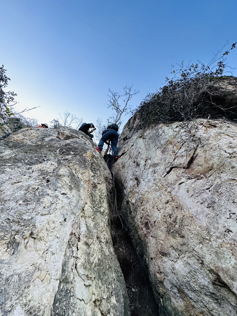 她要上去,上不去,我就在下面和大叔与另一个领队,我们三个人把她顶上去的,当时还在想,这样的体力和状态怎么还敢来圌山啊,现在想想,别人刚110都找过了,有啥不敢的,是我等看不懂了。所以这里也提醒大家,