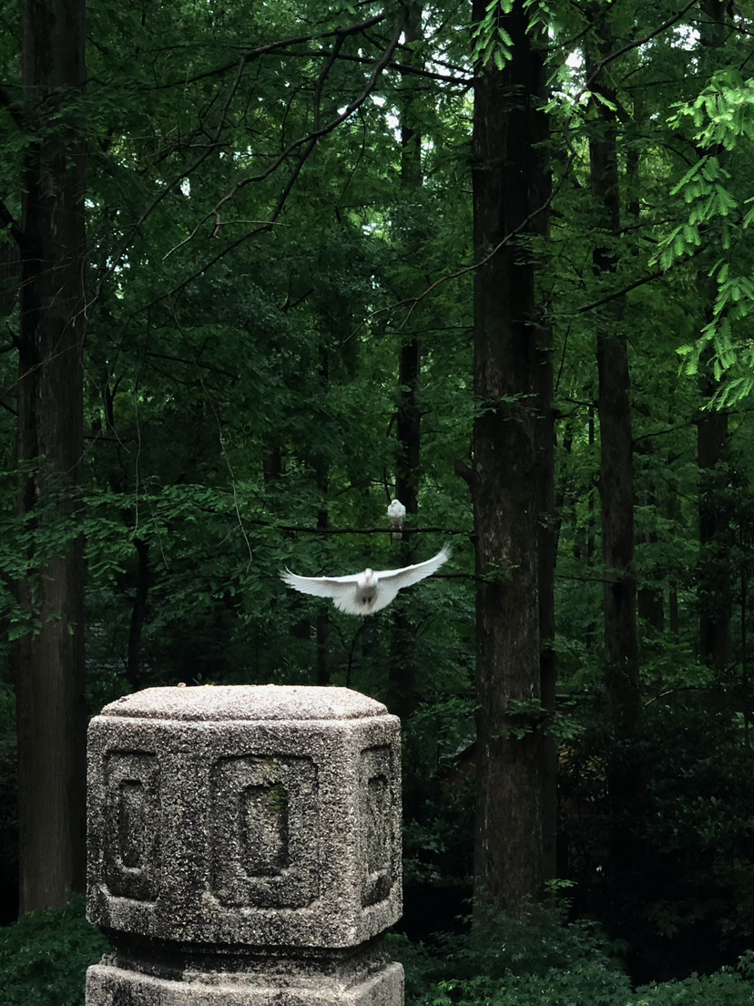 我们先来到了音乐台,这是一座露天音乐广场,常常举办各类音乐演出和文艺活动。音乐台背靠梅花山,环境幽雅,是游客休闲娱乐的好去处。在这里,游客不仅可以欣赏到音乐表演,还可以喂鸽子,但是由于那天下雨天气不好,我们只看见零星几只,没能感受到一群鸽子在天空徘徊的壮观。
