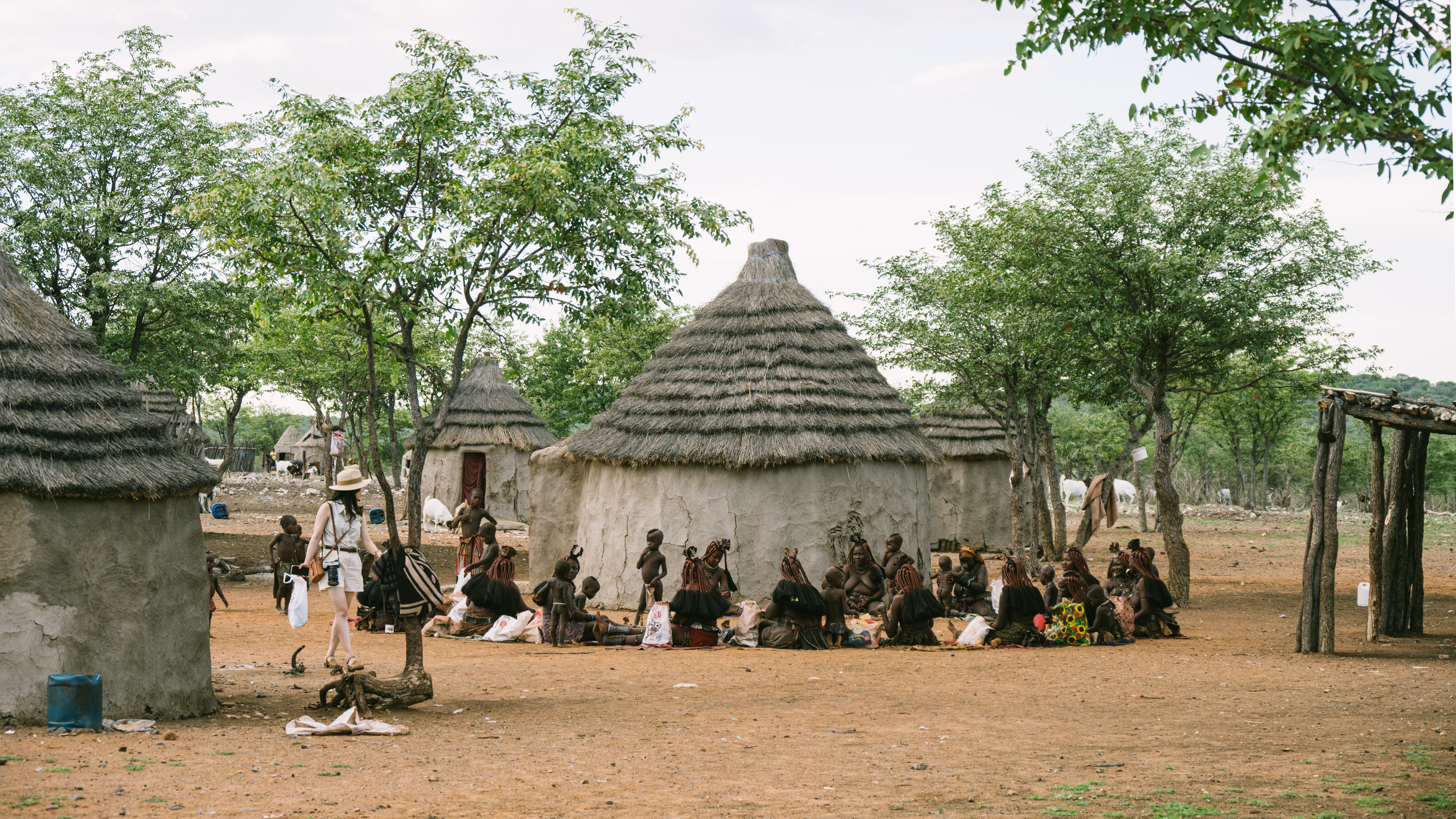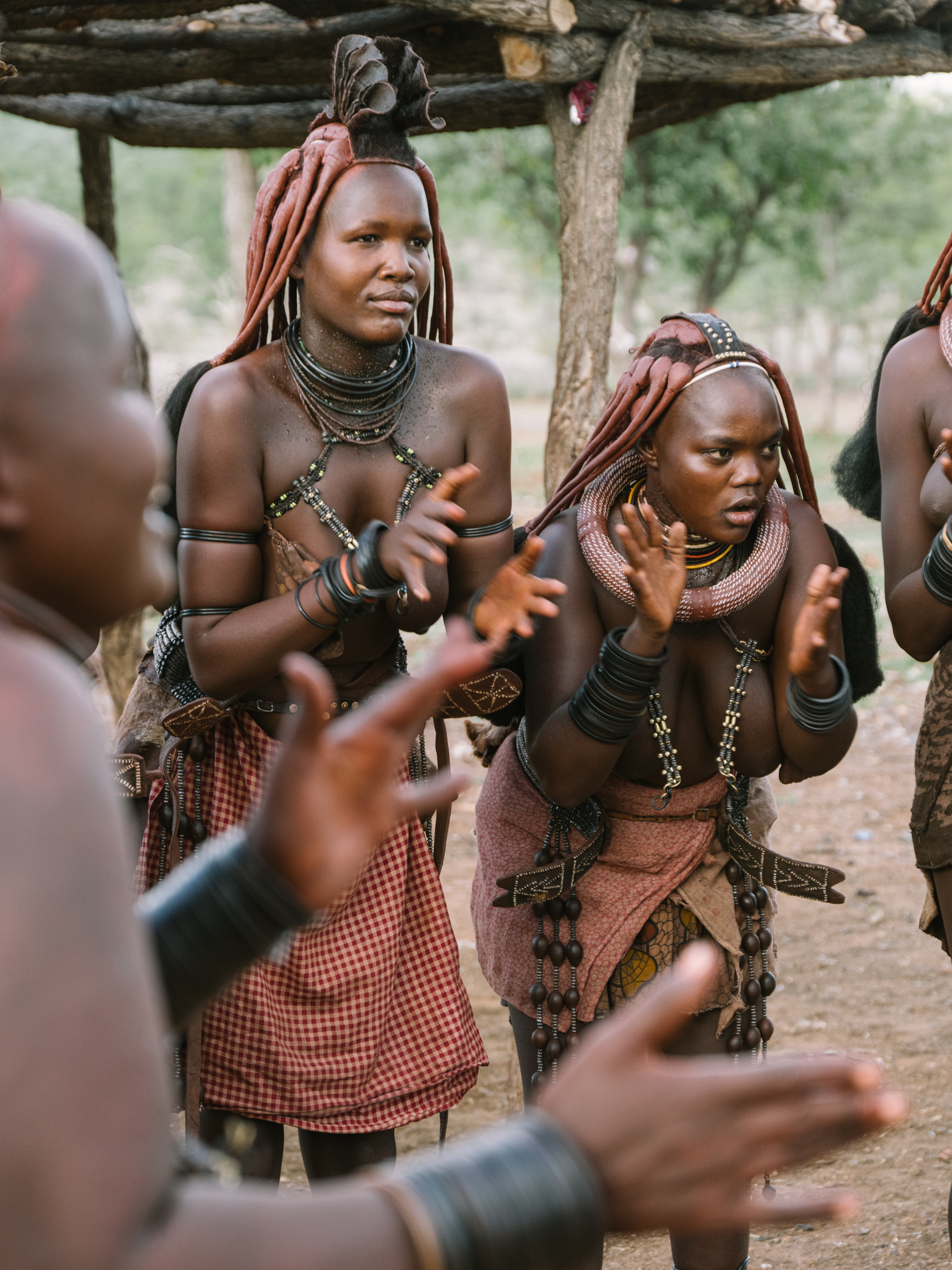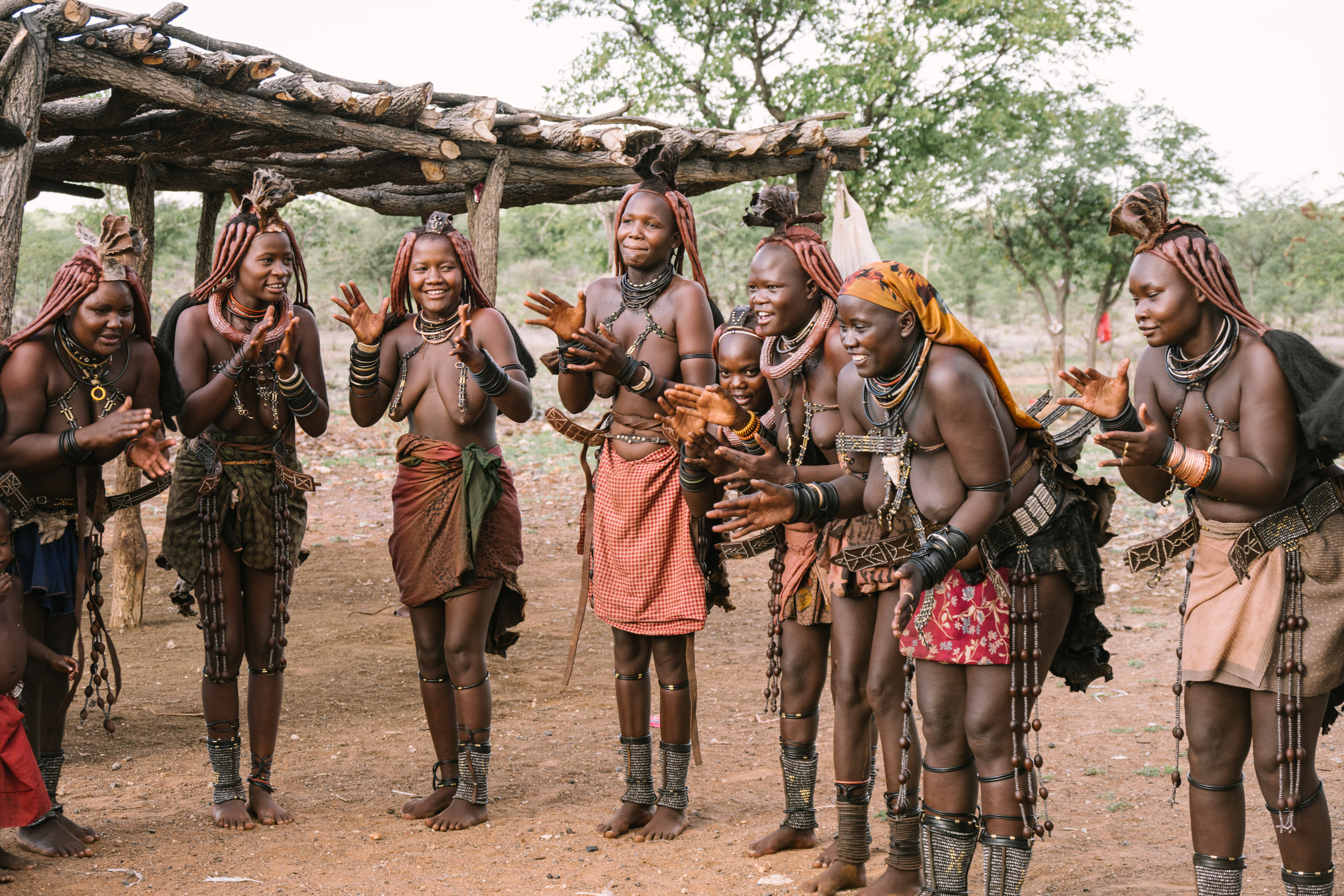 辛巴族女人成年后,用红土泥和牛乳提炼的黄油涂抹在身上,编织独特的发型,她们上身裸露以此表现女人的美丽。红泥用于防蚊和防晒