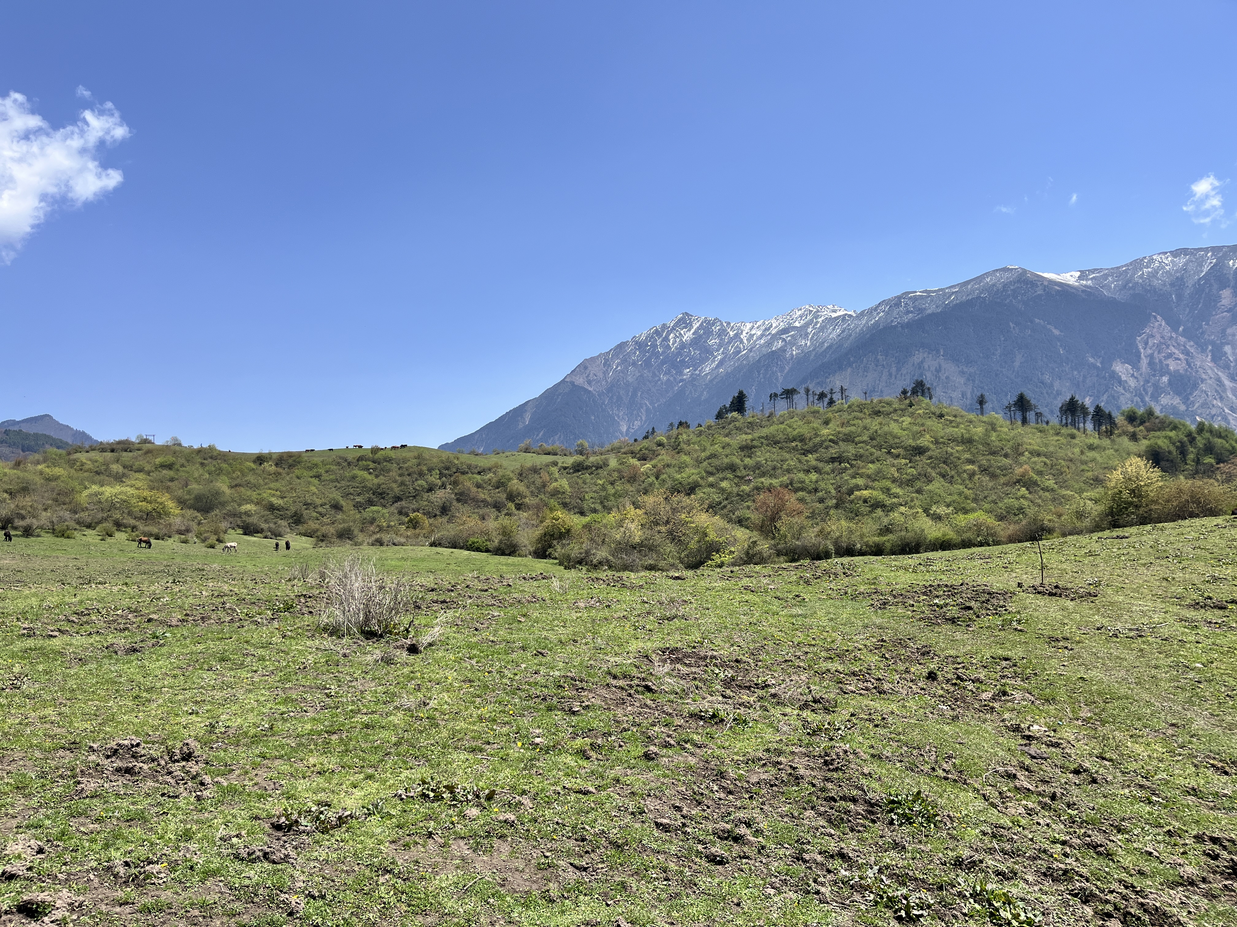 远处是高耸入云的山脉,白雪皑皑,从雪山上,流下一股股清澈的溪流,他们穿行在这片碧绿的草原上,野草茁壮地成长,为牛和马提供了丰富的养料。这时,有一匹骏马奔跑起来,它的腿健壮有力,马鬃飞扬,似乎豪情满怀,不禁发出了一声响彻天地的嘶鸣。我躺在天和地之前,看着云朵投下的阴影,自在地休憩,仿佛此时此地的一切都在牧神的怀抱之中。