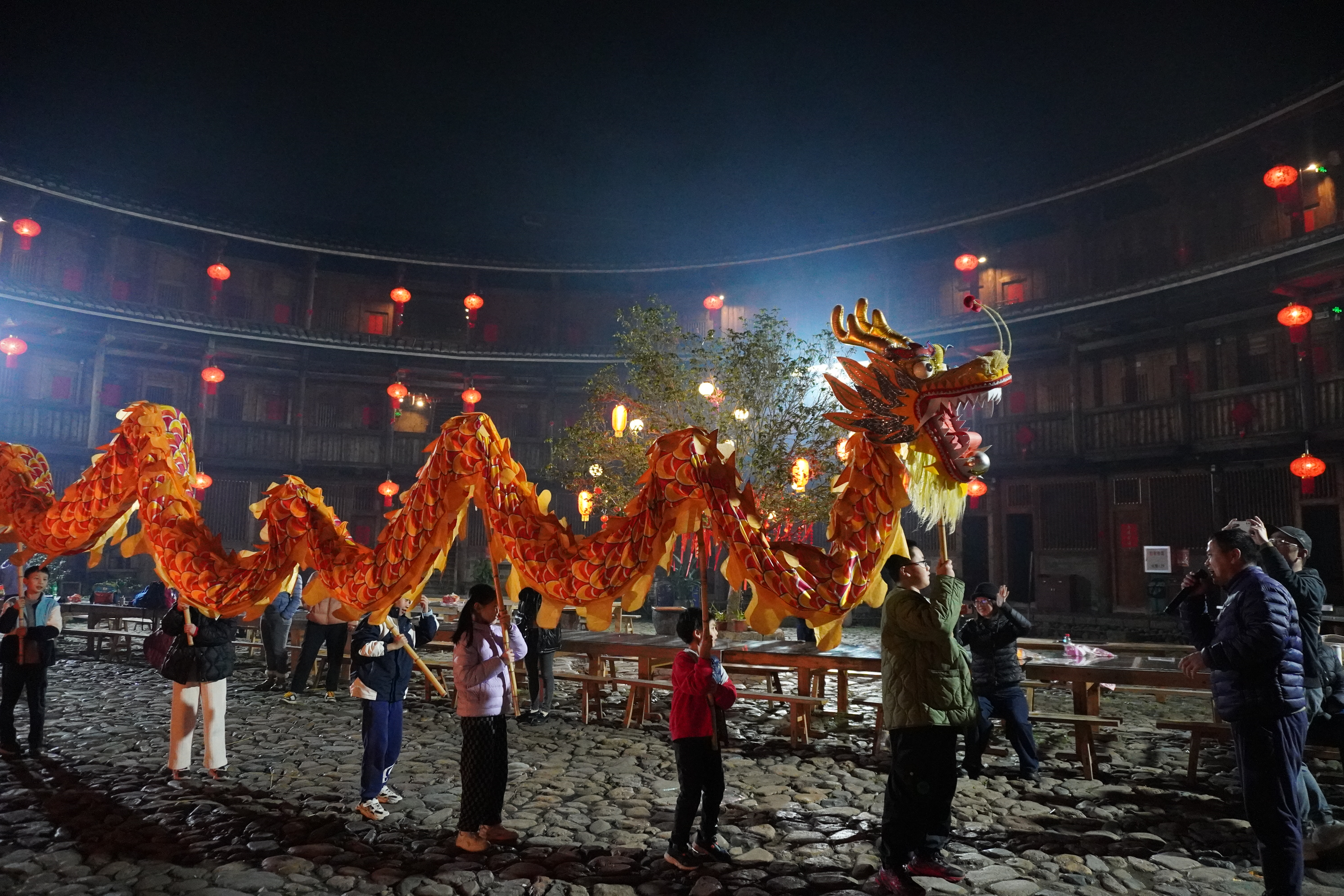 最后燃起篝火,来自天南海北的大小朋友手牵着手围绕着篝火载歌载舞。仙女棒点亮了大家每张笑脸。还有提前燃放的新年烟花,更将今夜推向了高潮,它绽放闪亮了整个土楼的夜空,也照亮了大家挂满笑意的脸庞。提前祝大家新年快乐!龙年大吉!阖家幸福圆满!