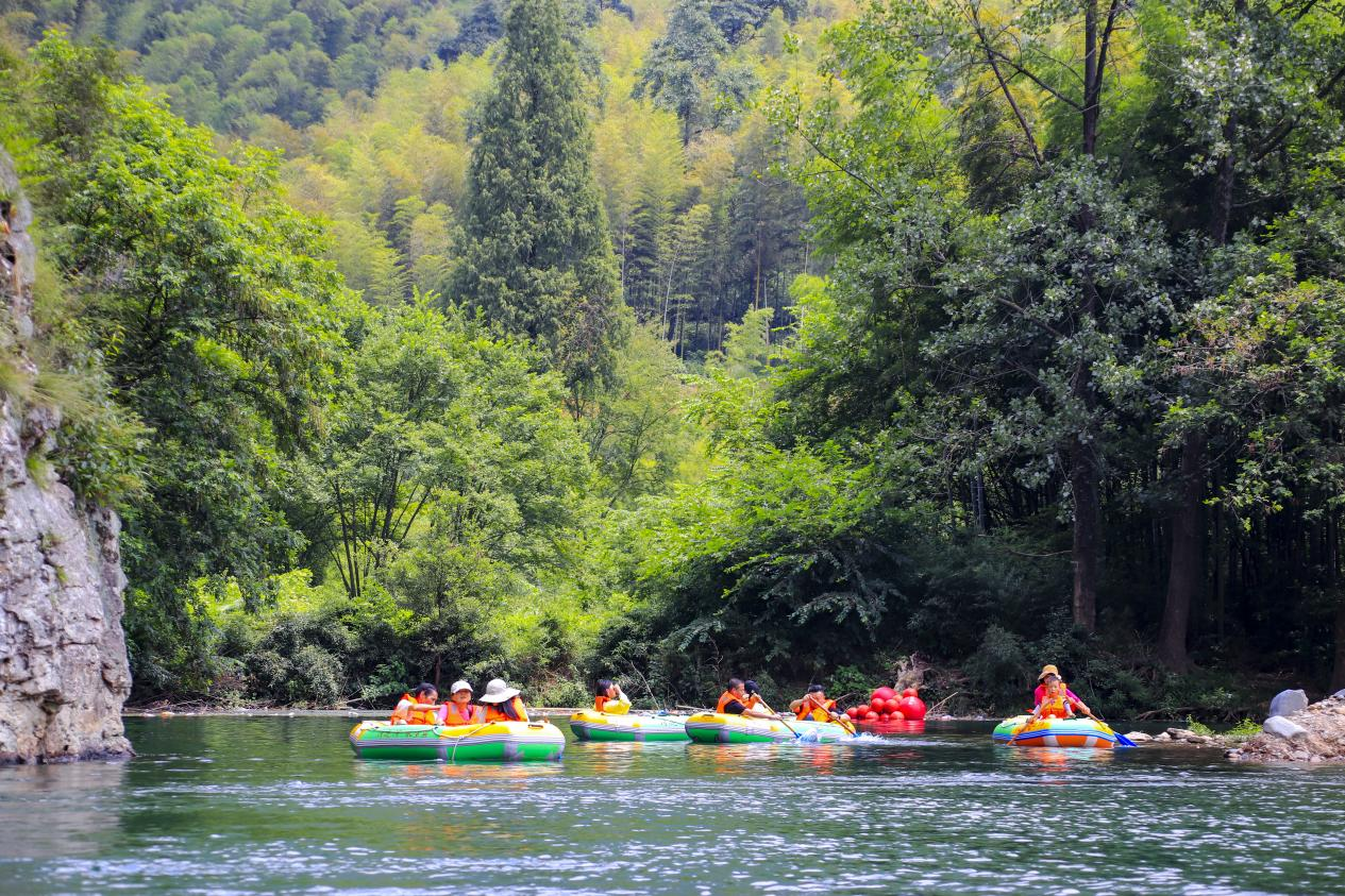 夏天的月亮湾堪比江浙沪人民的自驾天堂,因为这里巍峨的高山隔绝了都市的喧闹,清澈的流水洗涤着夏日的烦闷,无论是漂流还是戏水,大人或是孩童,都能找到他的专属欢乐。