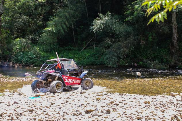 解锁赵村里,从村口的河流玩水开始!如果说漂流是山野冒险,那这里早就是冒险后的乌托邦。村口的河流因修建了鱼鳞坝,车辆可以从上面通行,河流水位相对较浅,深受广大游客的喜爱,在这里开车冲水、下河踩水才是避暑的最好方式。沿街的店铺林立,售卖着各种玩水工具,即便你是路过,也不用愁没地方买道具啦!