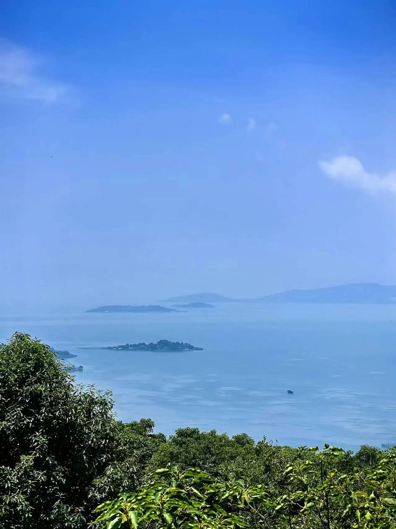 登顶莫厘峰,天气晴好,可远眺太湖碧波万顷。云湖相称,入眼成画。