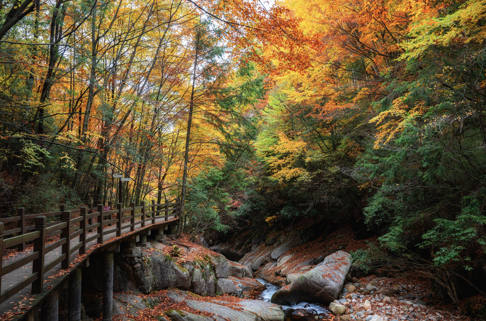 天然画廊的红叶秋景有多美呢,是你一踏进去就像是跌入了一个五彩斑斓的梦境。这里的景色变化多端,一会儿是橙黄、一会是橘红、不同的绯色在这里交织,枝桠密集成一片彩色天空,梦幻十足!