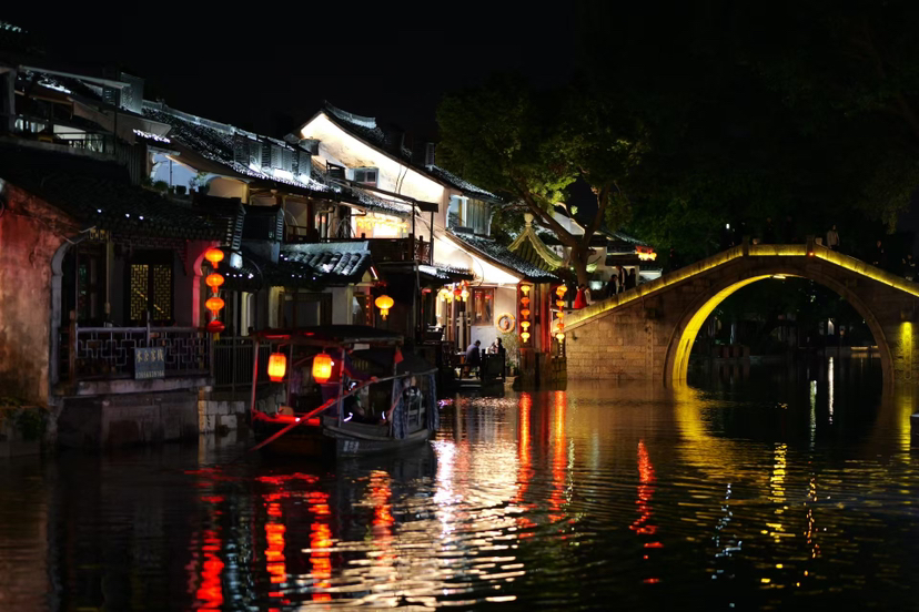 夜游西塘,红灯笼摇曳,古桥横跨,坐上摇橹船,听桨声欸乃,看沿岸烟火人家,古镇的韵致尽在这夜色里流淌,沉醉不知归处。