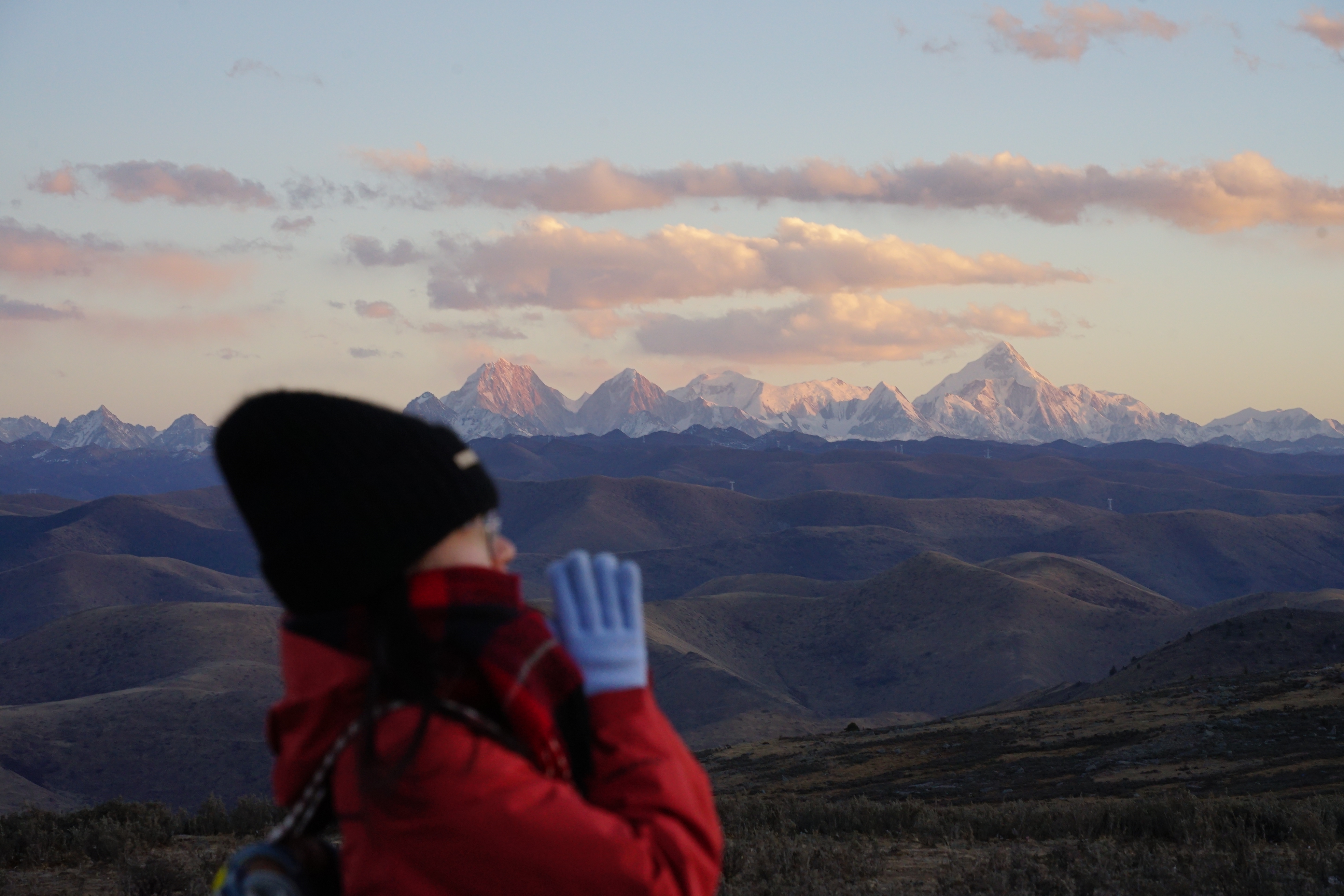 新年里,追一场日落,我想肯定是浪漫的。鱼子西就是不错的选择,今日运气爆棚,贡嘎雅拉都得以相见。淡淡的晚霞映衬,日照金山,蛇年一定巳巳如意。