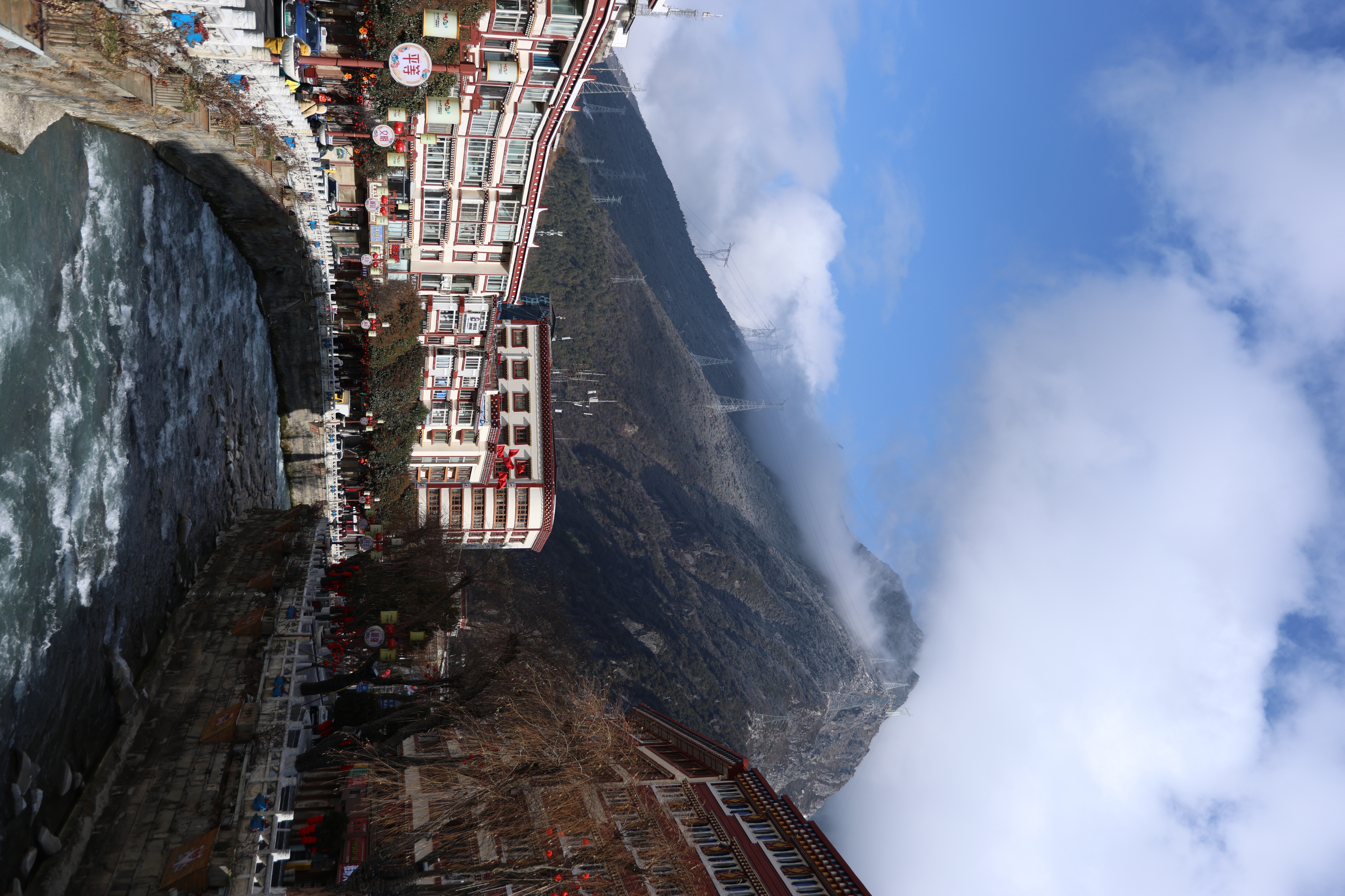 中午的康定小城笼罩在一层淡淡的寒意中,街边的老槐树上结着薄霜,树枝在风中轻轻摇曳。菜市场里,牦牛肉的红色和干菌子的褐色与白雪形成了鲜明的对比,空气中弥漫着牛油香和野葱的清香。街边的老者摆着一摞青稞饼和糖果子,热气腾腾的饼香与冷气浓郁的雪地形成了奇妙的呼应。孩子们在街边追逐着飘落的雪花,笑声清脆,像是冬日里最美的乐章。