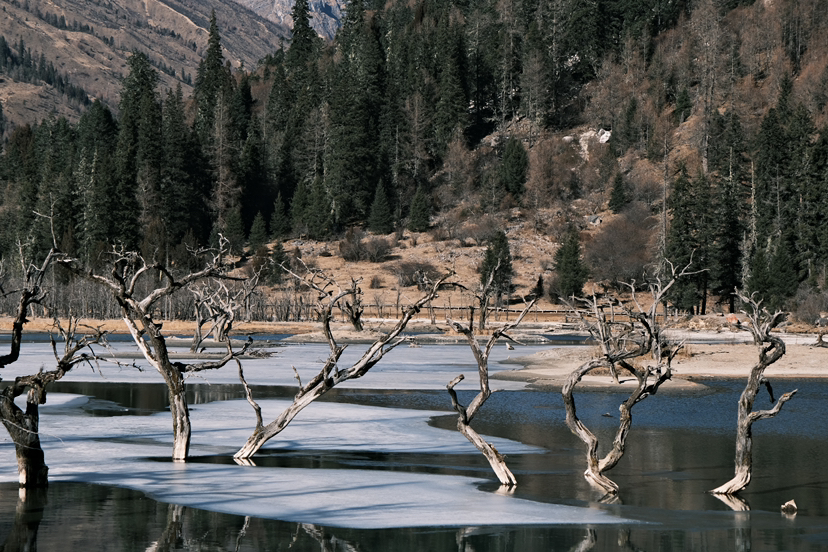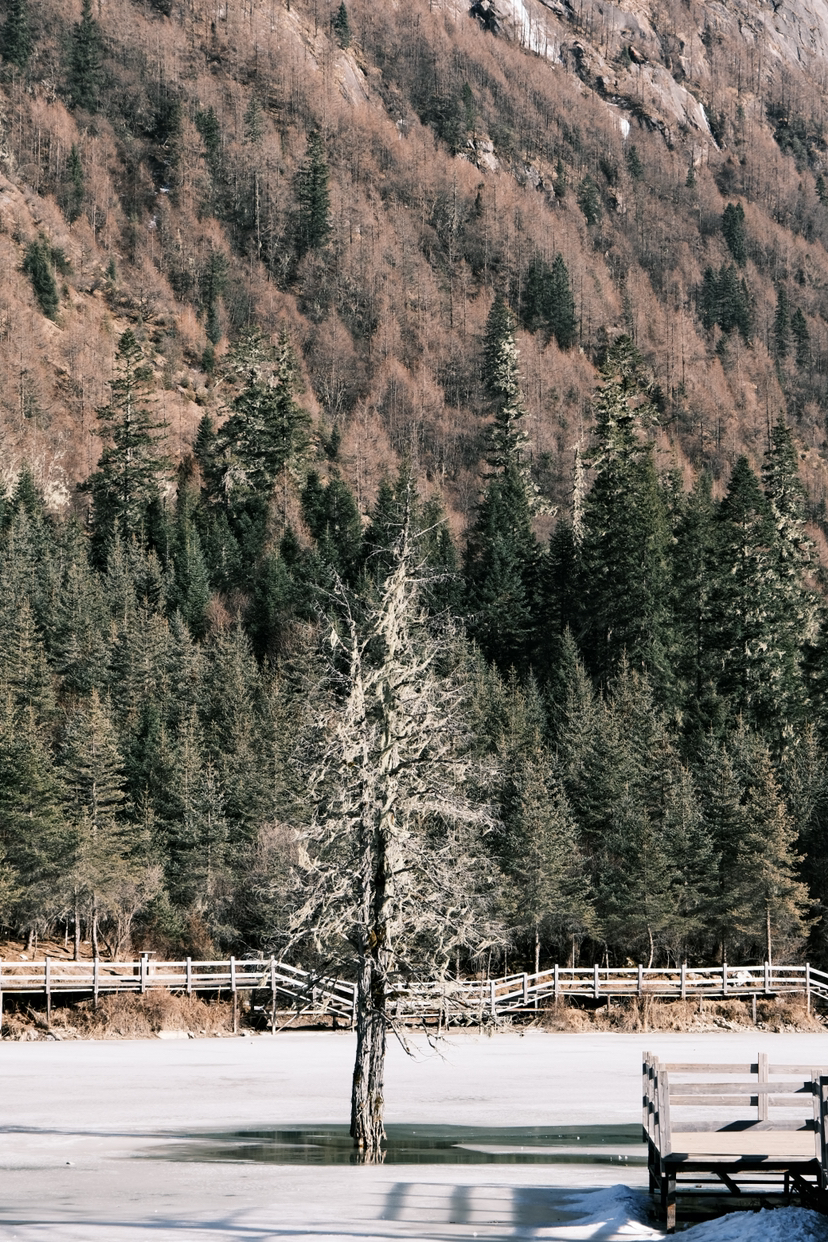 双桥沟的观光车像行驶在立体画廊:红杉林的金黄针叶铺满栈道,布达拉峰倒影在隆珠措的镜面湖水上,撵鱼坝的草甸上牦牛如散落的黑珍珠。最惊艳的是人参果坪,秋色浸染的灌木丛中,白塔经幡与雪山构成一幅藏地油画。