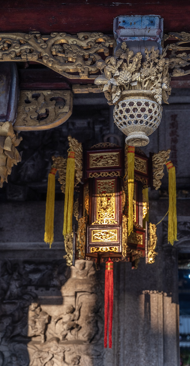 穿出步行街,来到观音庙,观音庙的夜景特别好看,屋顶的嵌瓷装饰也非常精美。