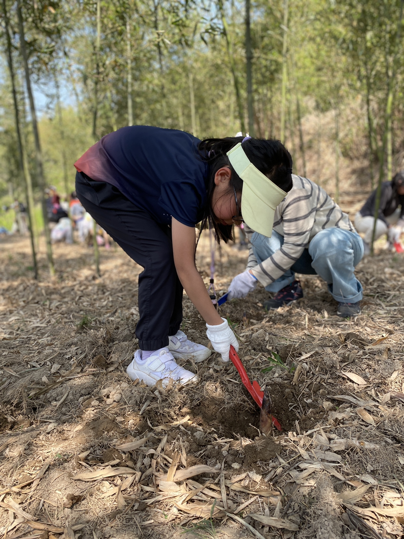 下午徒步到覆卮山,石浪堆像巨龙的石头脊背。小朋友看到手脚并用往上蹿,家长在后头喊着当心,也全然不顾。爬了两圈,三圈,四圈,体力就像耗不完一样!最疯的是挖笋——领队教小朋友看地面裂缝,孩子们见土就刨。挖的不亦乐乎!
