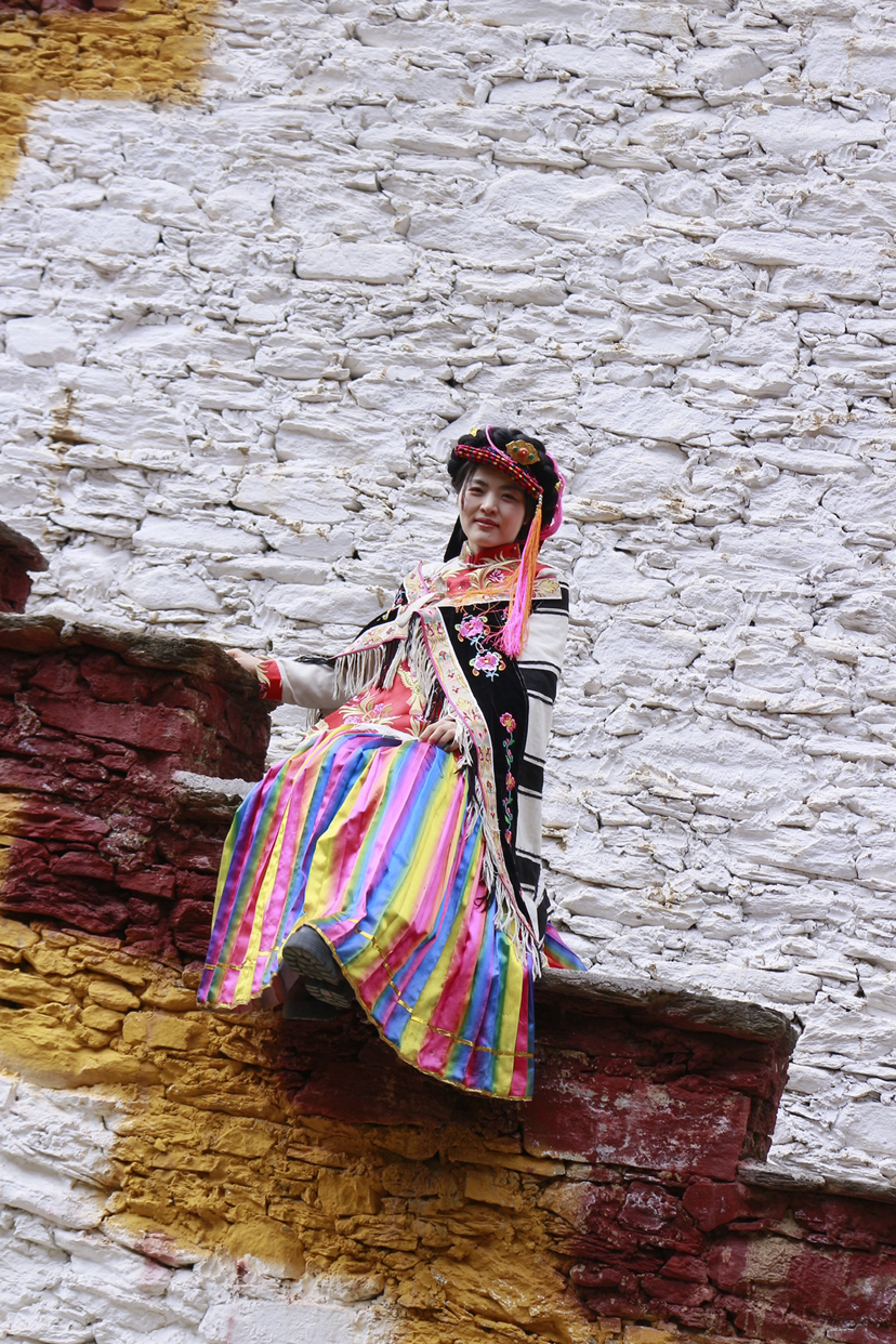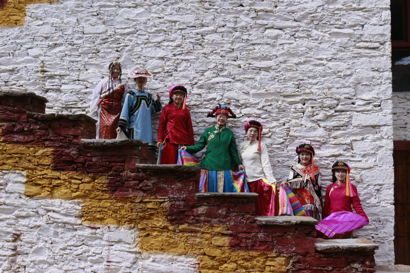 换上藏装时,客栈主人德吉细心为大家搭配服饰和调整腰间的腰带。她说藏袍每道褶皱都有讲究,右衽象征山河走势,宽大袖口能装下整片草原的风。站在碉楼顶层远眺,夕阳为每座石砌房屋镀上金边,炊烟与暮色缠绵上升,恍惚看见茶马古道的商队正从时光深处走来。