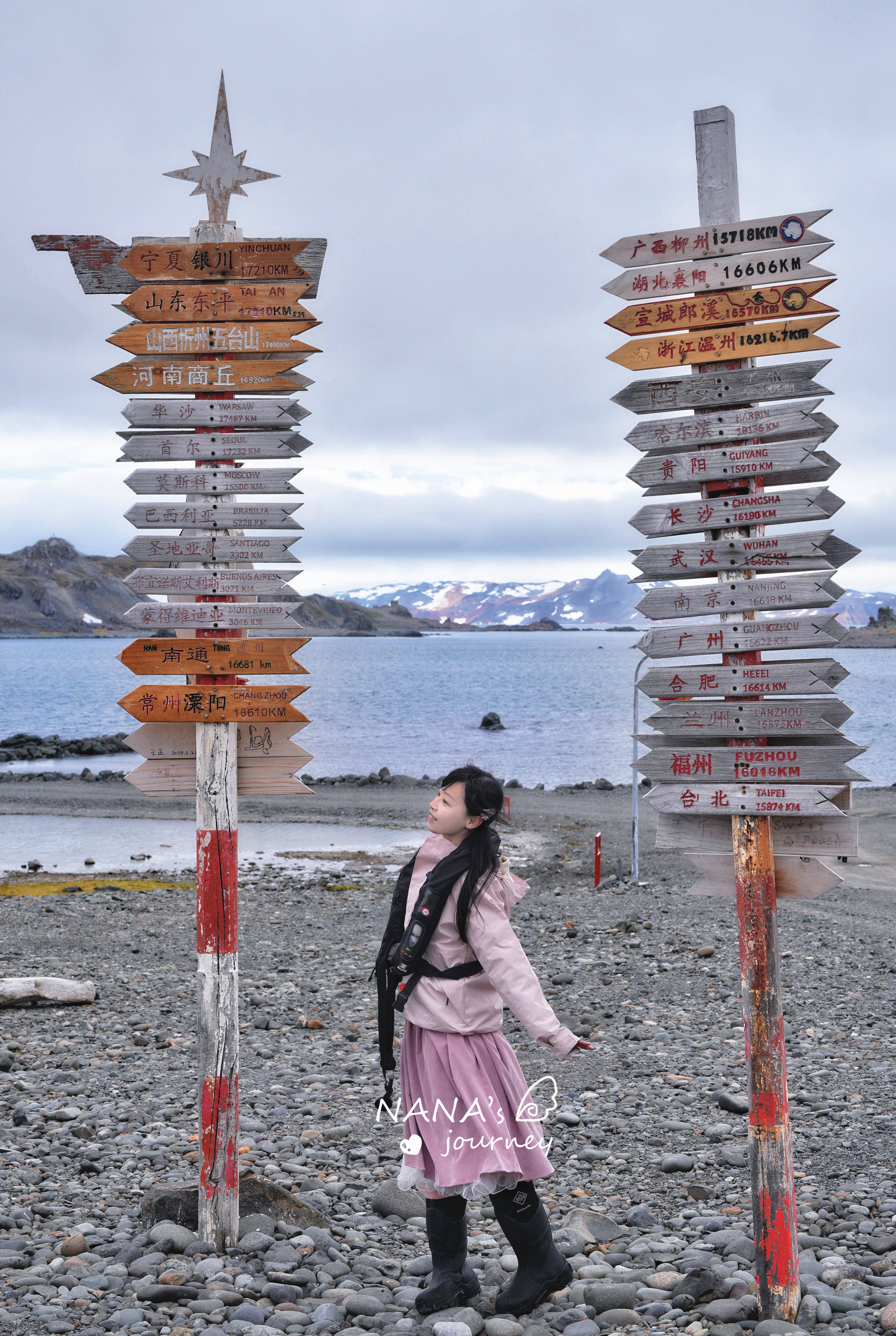 一上坡就能看到空地上的两个方向标,方向标上是无数中国的各个城市到南极长城站的距离,还有个企鹅模样的卡通标,这个标特别好看,也很有意义哦~