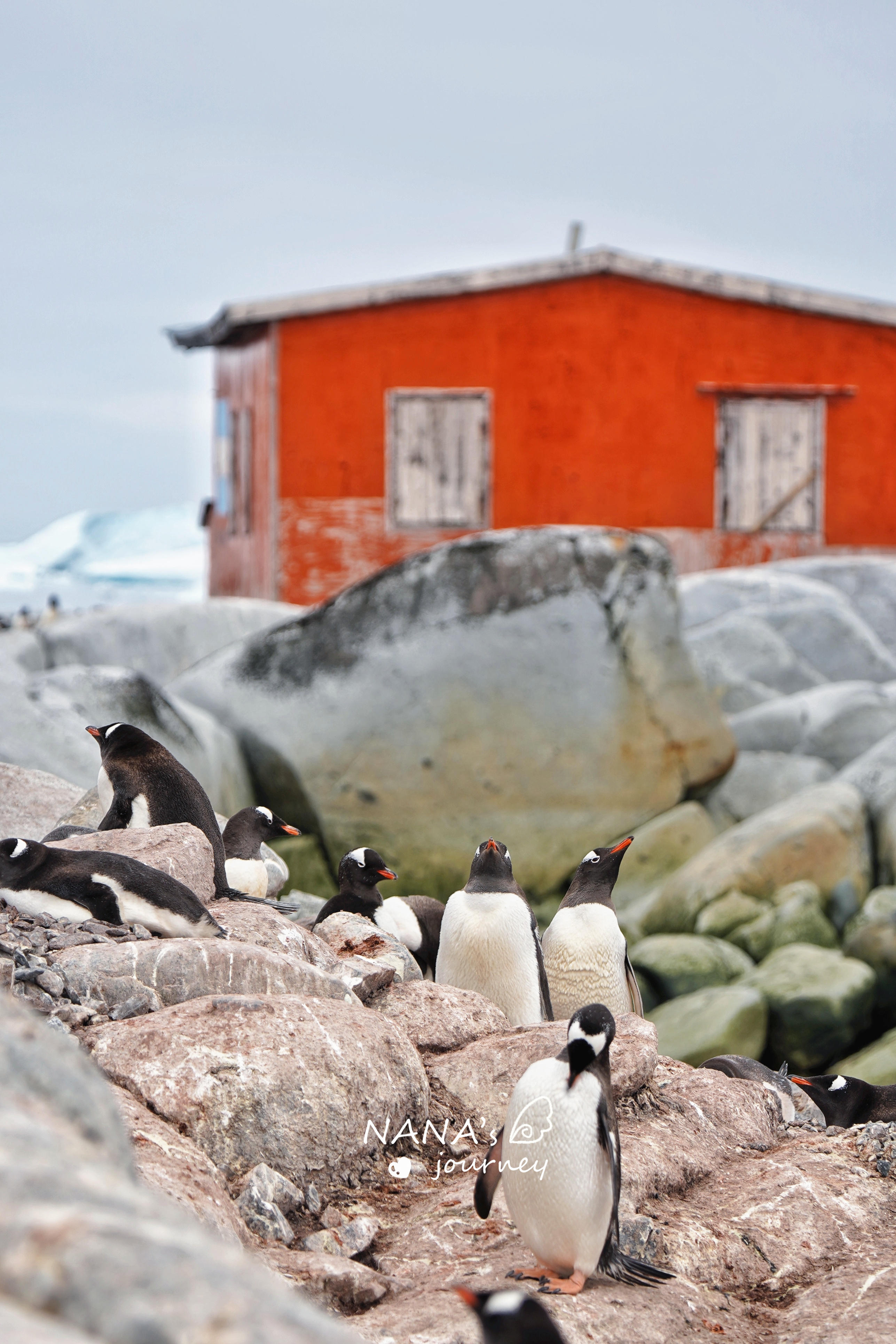 回到入口处,这一侧有一栋小红房子,应该是监测人员来的时候住的地方,保护南极环境保护南极动物,都是现在的重中之重~看着企鹅们其乐融融的一大家子,真的也让我们幸福感满满。
