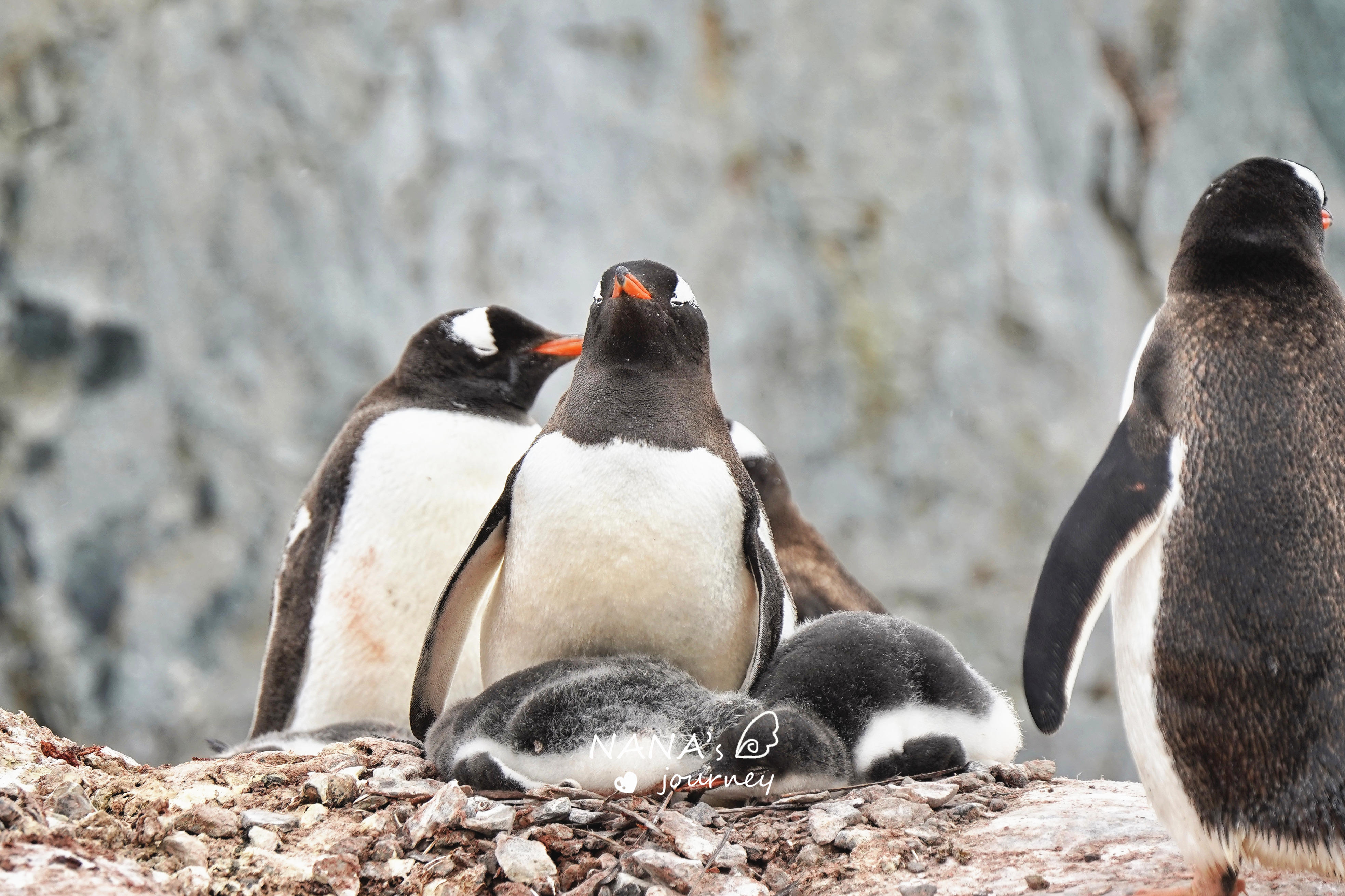 巡游虽然不能登陆,但是能比较靠近陆地看企鹅们,这片陆地上的小企鹅特别多,都是正在嗷嗷待哺的年纪,要么趴着,要么呼叫父母肚子饿了,非常的热闹。加上背景的雪山,氛围感十足。