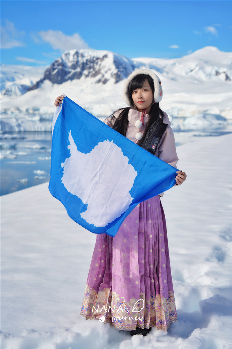 因为是登陆南极大陆的重要日子,所以我选择了马面裙,带着汉服走上南极大陆。
