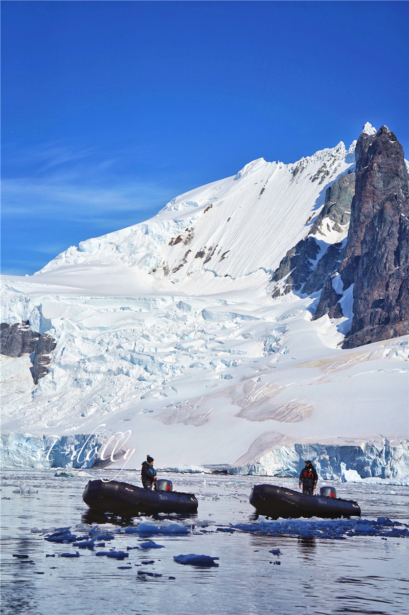 ☆南极真的处处是冰川,冰川面前我们是如此渺小。一次巡游,我们跨过浮冰满满的海面,靠近冰川去感受冰川之壮丽。运气好还能看到冰爆,每天都有无数次冰面融化摔落海中的震撼。