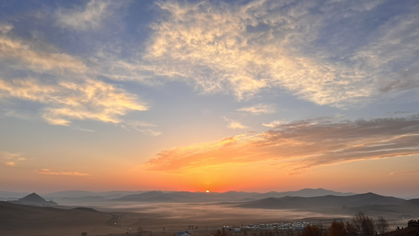 第四天的惊喜,从一场草原日出开始。早早起身,在微凉的晨风中等待第一缕阳光刺破天际,看着金色的光芒渐渐铺满草原,万物从沉睡中苏醒,那份震撼与治愈,足以成为珍藏许久的记忆。日出之后,换上装备体验骑马——在牧民的指导下,缰绳轻握,马儿缓步前行,脚下是柔软的草地,身边是辽阔的天地,仿佛自己也成了草原的一部分,自在而舒展。尽兴之后,我们返程入住丰宁马镇的梦马酒店,酒店的设计处处融入马镇特色,让草原的浪漫氛围延续至夜晚。