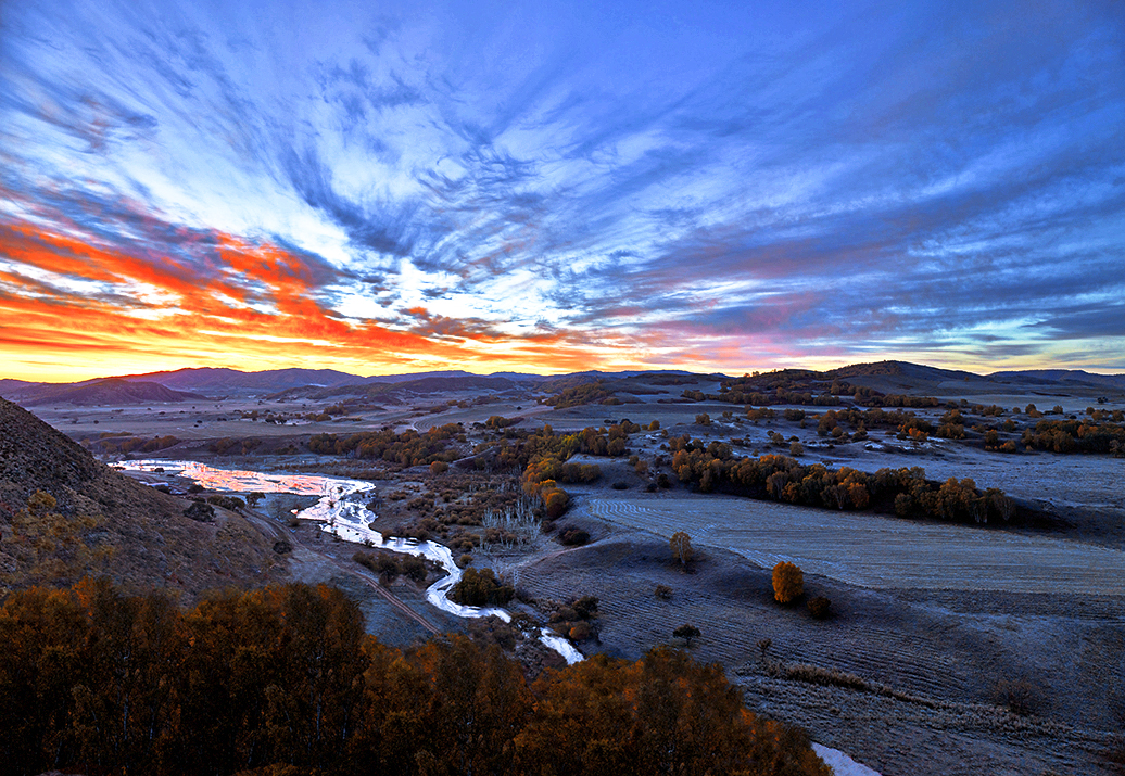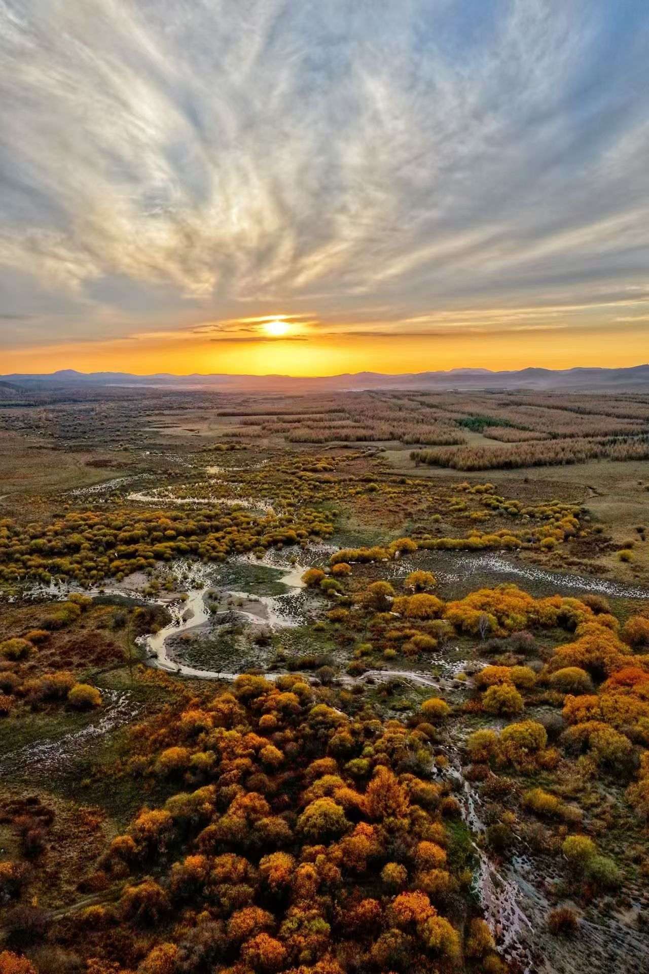 秋天的乌兰布统草原,丘陵、沙地、河流、湖泊等多种地貌交织,景观十分独特。