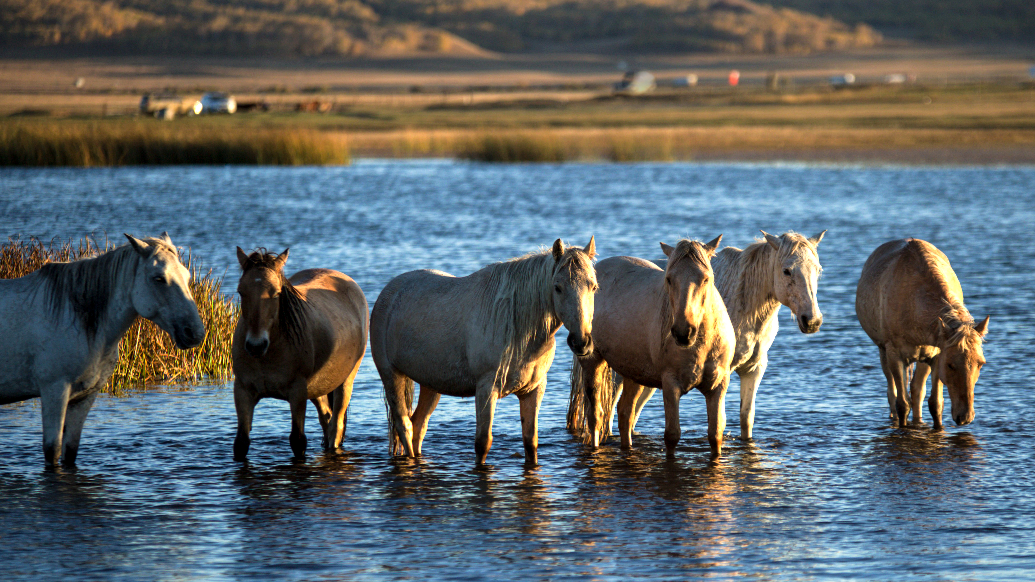马踏水花,是草原摄影的一个经典项目,但奔马在水中疾驰,劈波斩浪,水花四溅,牧人扬鞭催马,场景十分震撼。