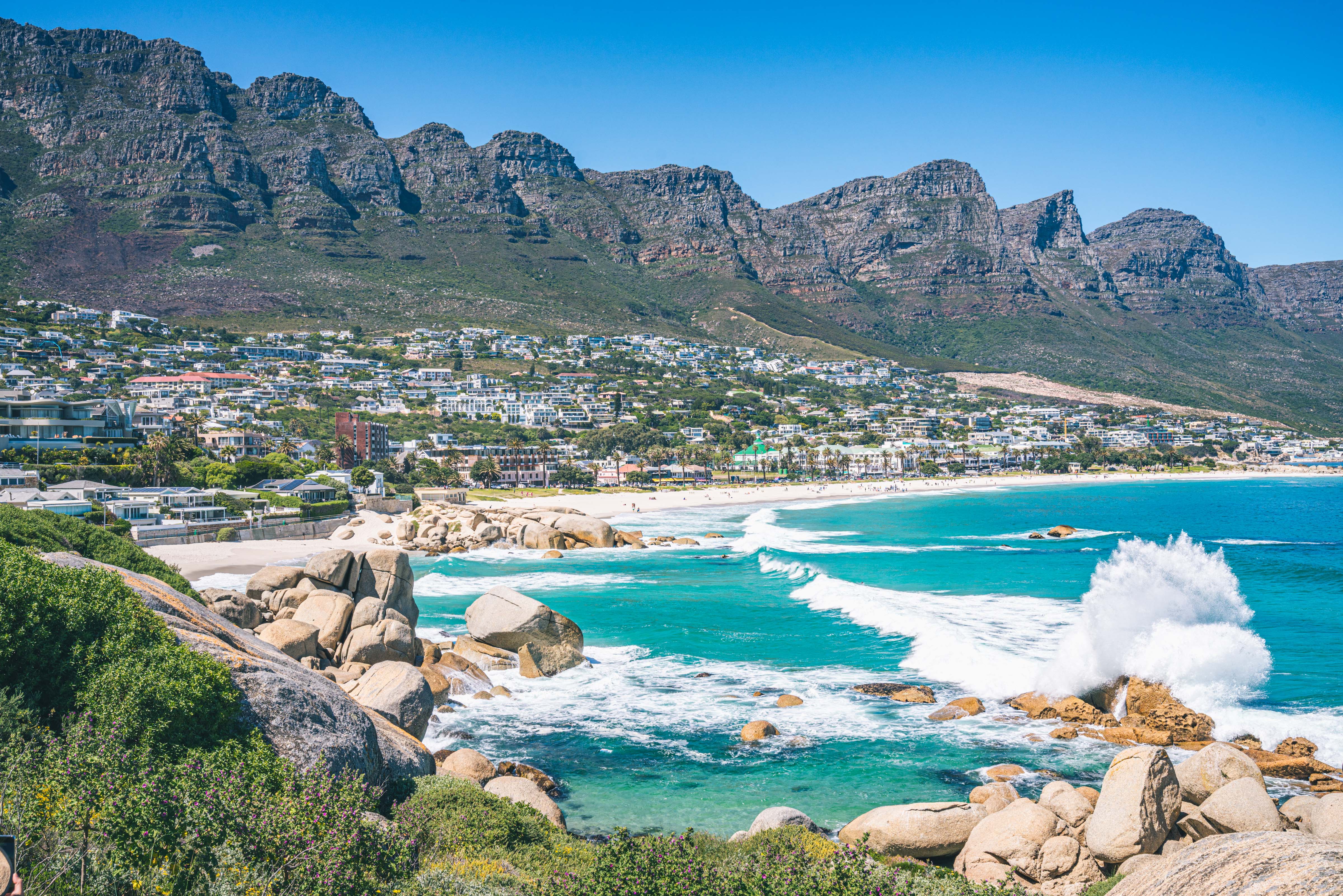 坎普斯湾坐落于开普敦西南海岸,距离市中心约 10 公里,是开普半岛最迷人的海湾之一。这片被大西洋温柔环抱的海滩,以右侧绵延的十二门徒峰为天然背景 —— 十二座形态各异的花岗岩山峰如巨人列阵,峰顶常萦绕着轻薄云雾,与湛蓝海水、洁白沙滩构成开普敦最标志性的画面组合。这里虽不及好望角的壮阔,却以 “山海同框” 的精致景致,成为当地人眼中的 “城市后花园” 与游客心中的 “拍照圣地”。