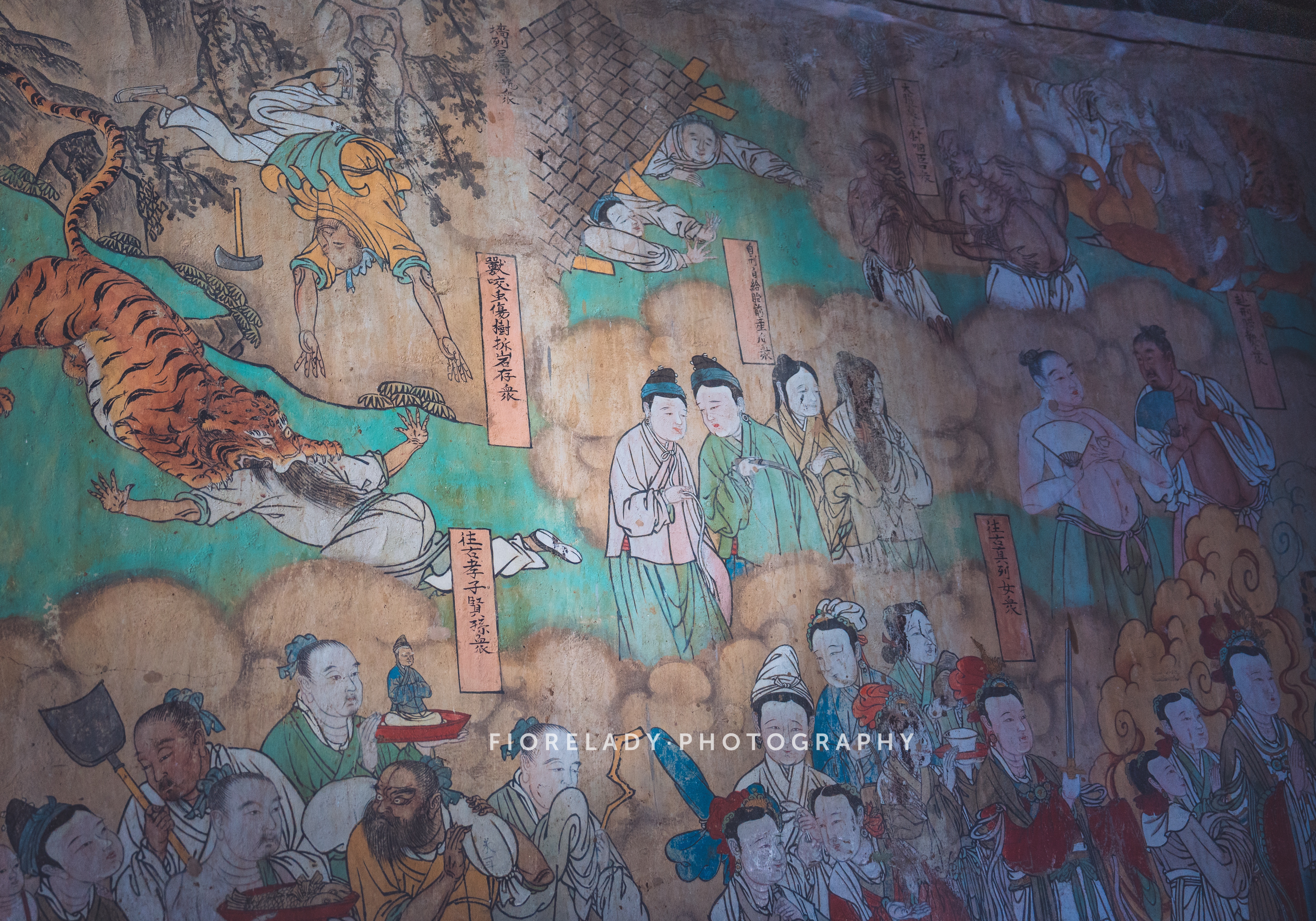 5. 水陆壁画:殿内四壁满绘金代壁画,面积达340多平方米。内容以说法图为主,人物众多,线条流畅,设色以石绿、朱砂为主,庄重典雅,虽然损毁不少,但残留的线条和色彩依然能窥见当年的风采