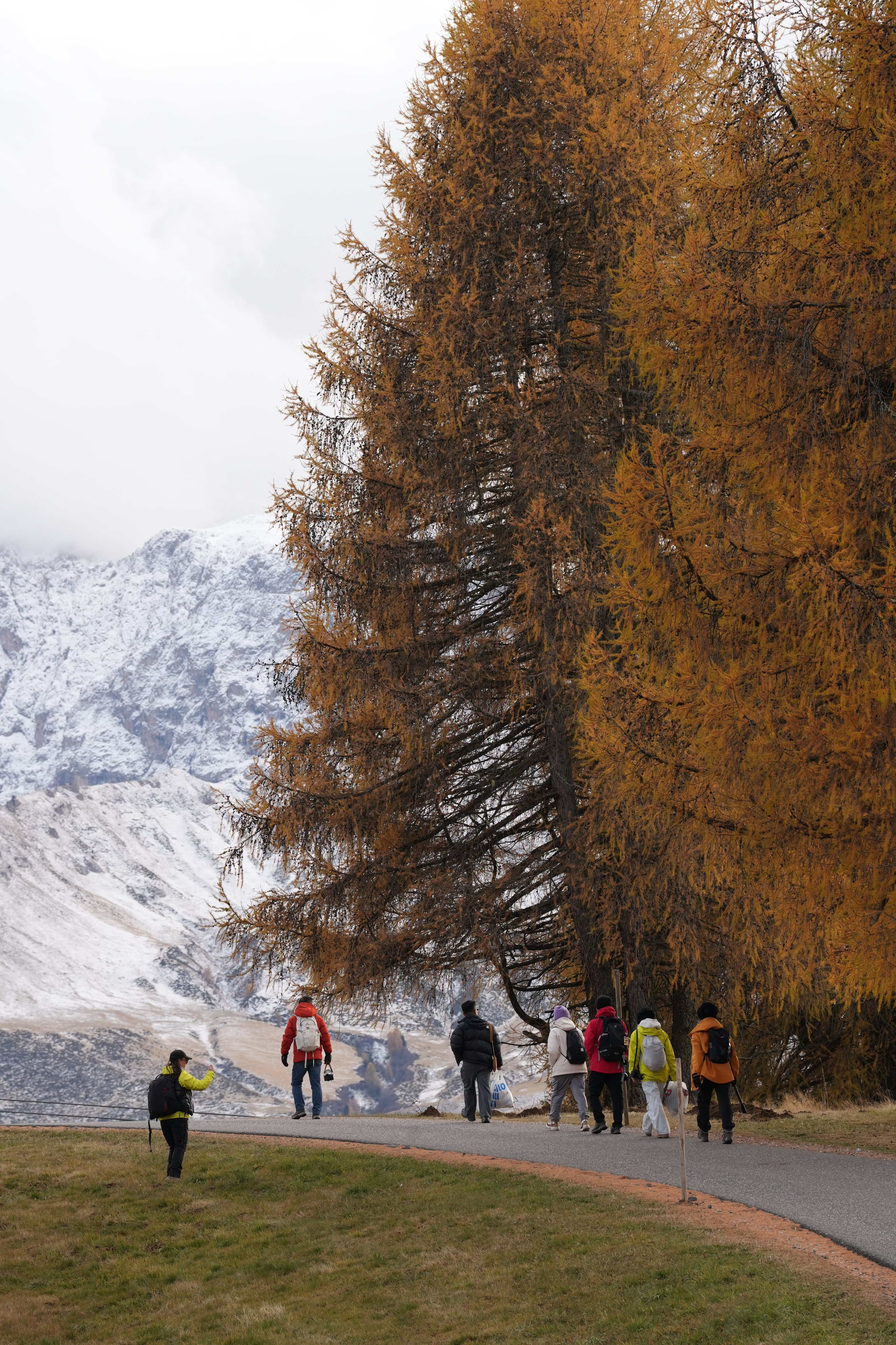 清晨抵达福内斯另一侧,我们直奔【Seceda Cable Car】缆车站,换乘一次后,仅 15 分钟便登顶刀锋山。秋日的山野早已换上盛装,层林尽染间,黄绿交织成绚烂画卷,徒步线路穿行其中,步步皆景,随手一拍都是定格秋意的佳作。