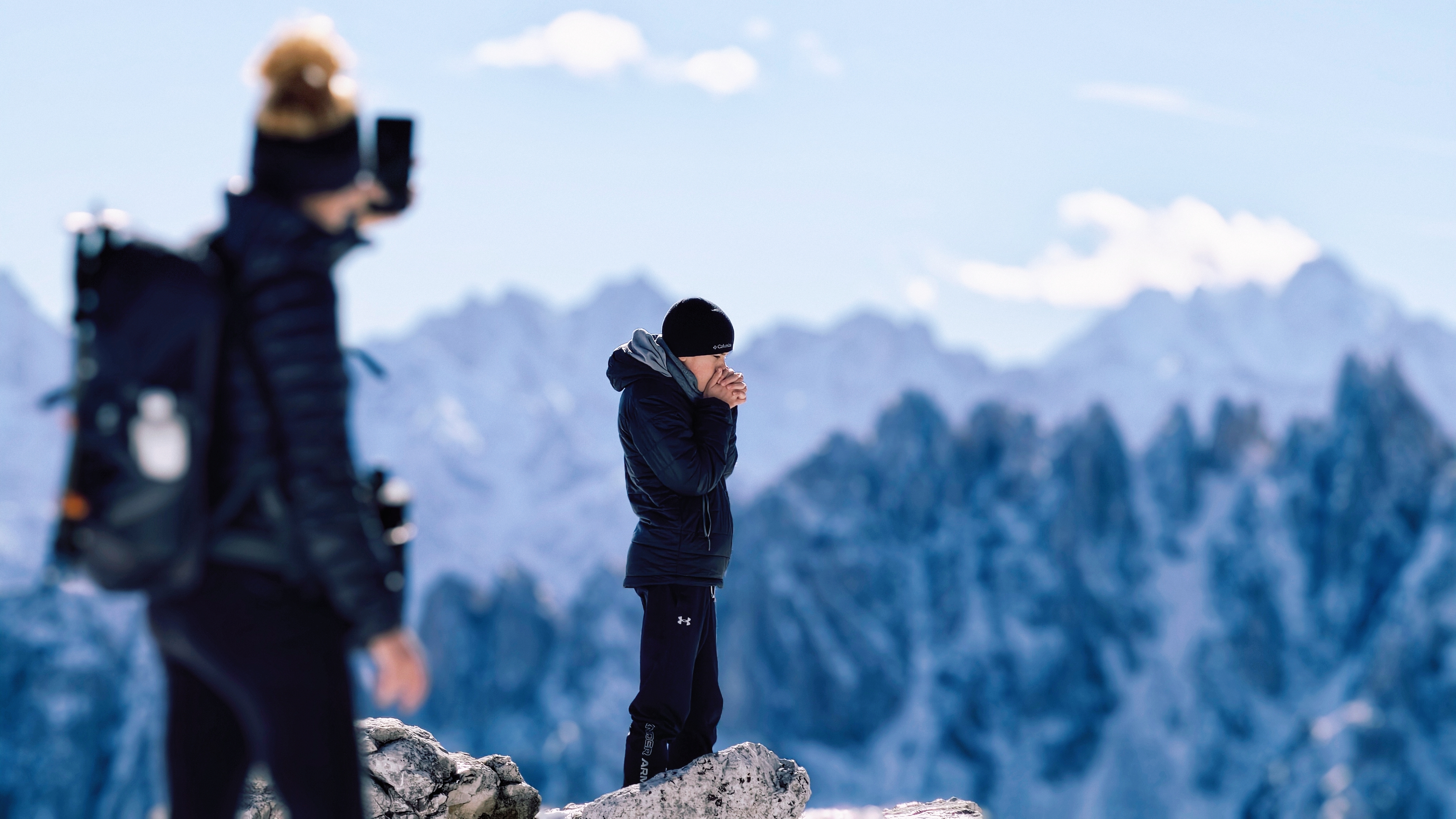 稍作等候后,我们开启 12 公里徒步之旅,累计 500 米的爬升虽不算轻松,但沿途美景让人步履不停。脚下的路径覆着薄雪,踩上去发出 “咯吱” 轻响,身旁是挂着雪粒的秋草,远处山峦在云雾中若隐若现,秋的斑斓与冬的清冽在此刻完美交融。