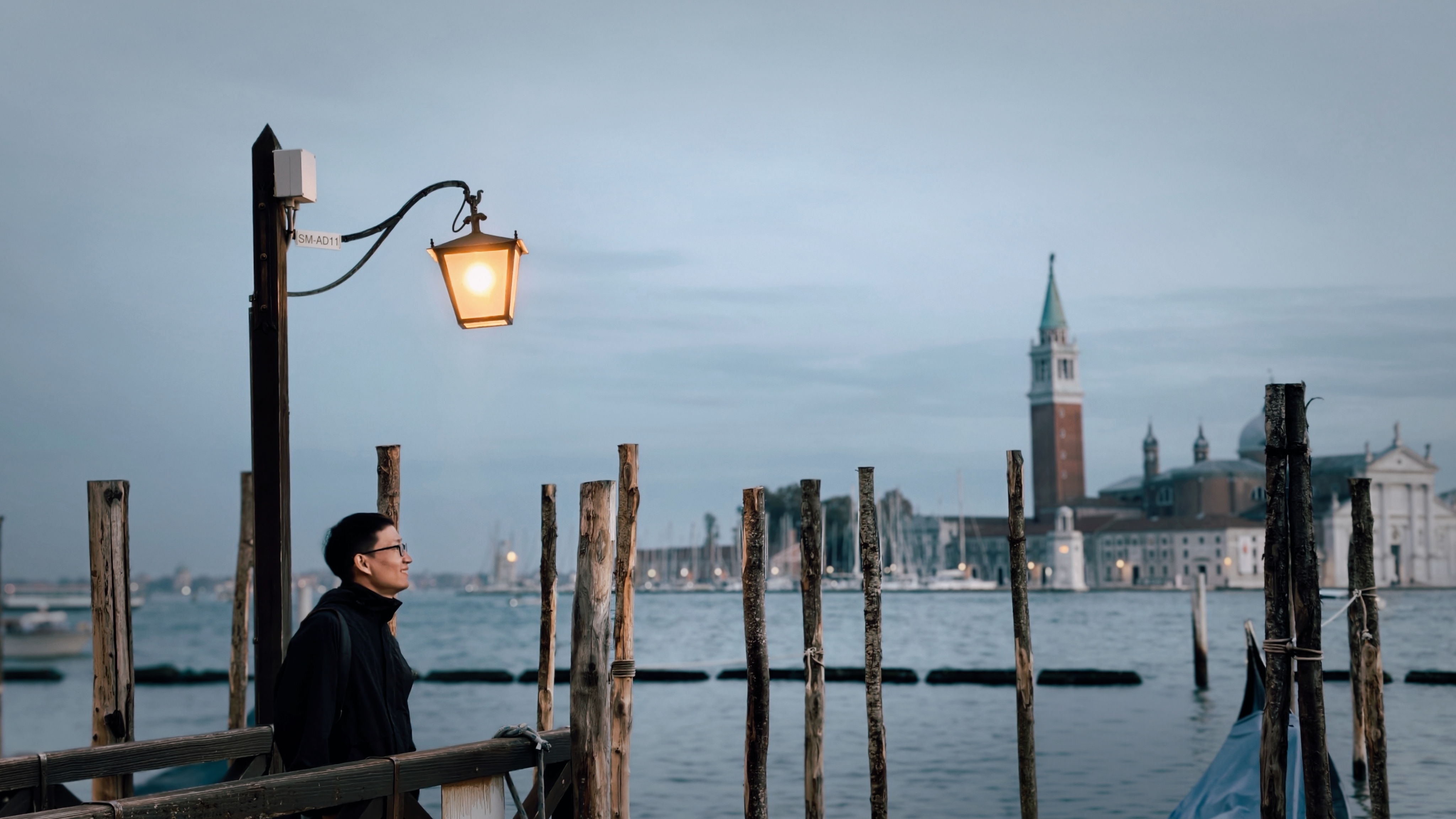 清晨的威尼斯没有日出,却邂逅了静谧的蓝调时刻。天色微亮,蓝灰色调笼罩着水城,运河水面平静如镜,建筑与桥梁的轮廓在薄雾中若隐若现,微凉的空气里满是清冽气息,这份独特的静谧让人沉醉。
