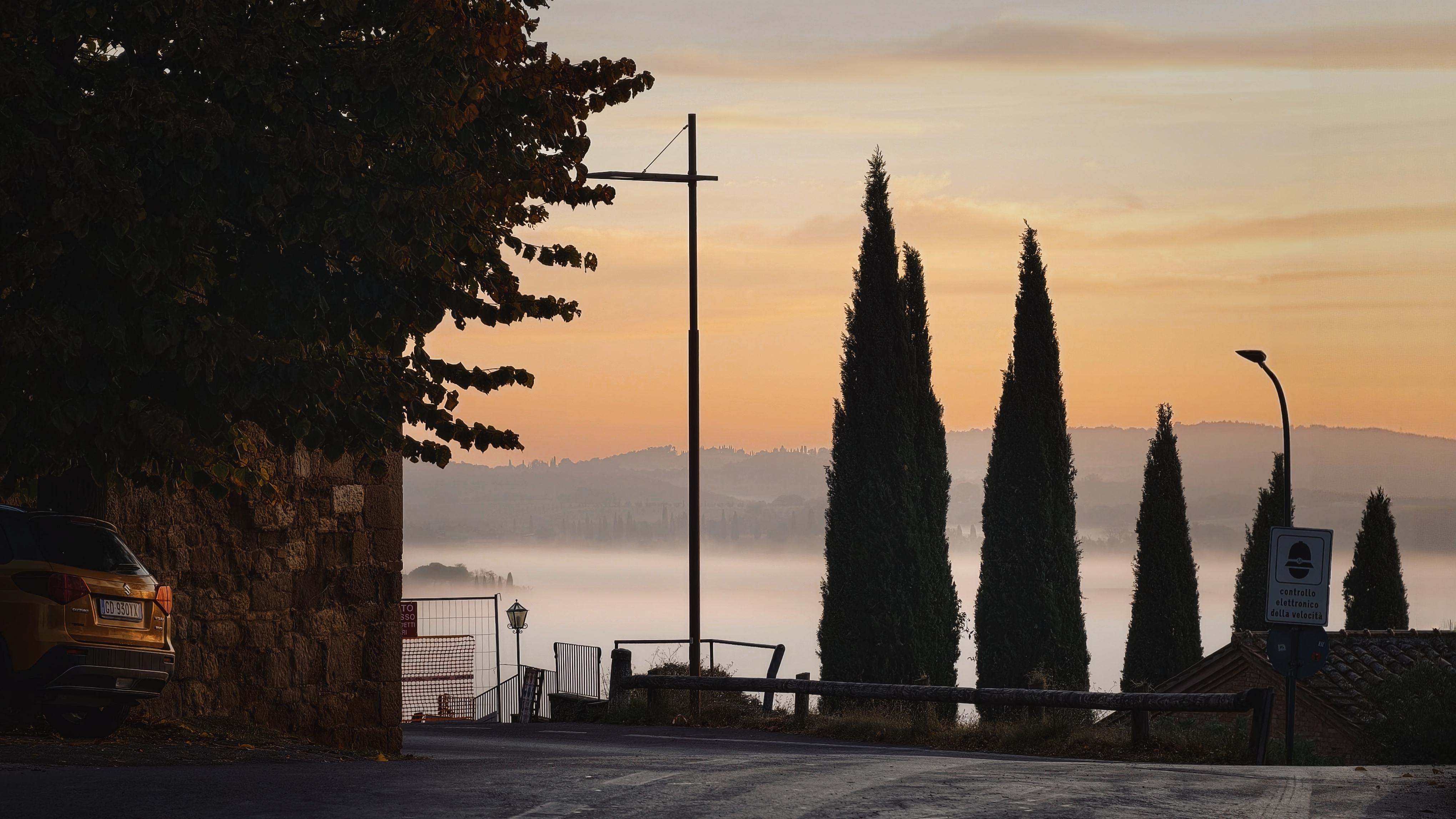 清晨的皮恩扎被晨雾包裹,远处的丘陵只剩模糊轮廓。守到日出一刻,金红色的光芒刺破雾层,雾气如同被唤醒的精灵,在山谷间缓缓流动,整个世界都变得温柔起来。返回酒店享用早餐,火腿、奶酪配新鲜水果,搭配着雾散后明朗的天色,味蕾与视觉都得到满足。