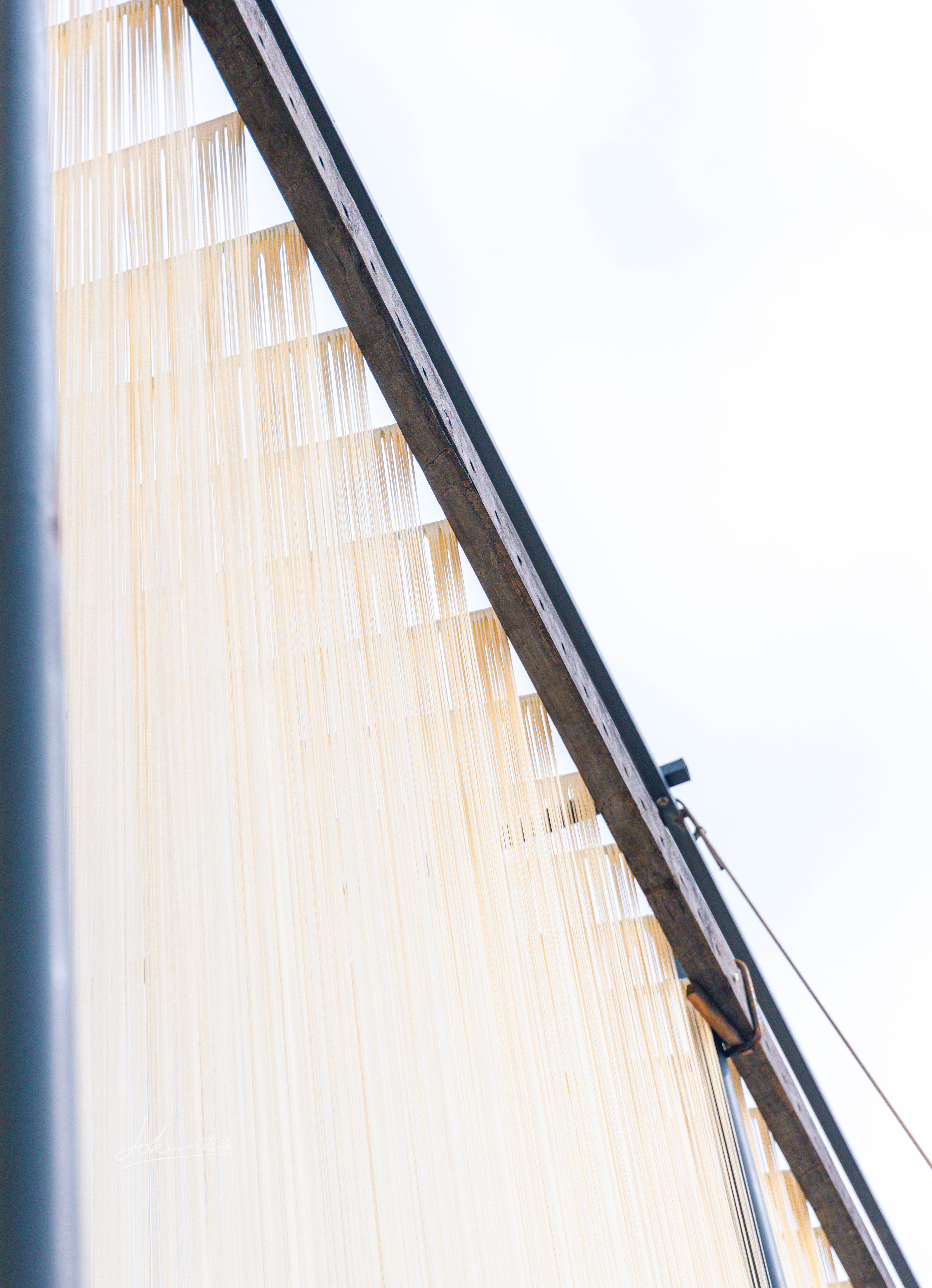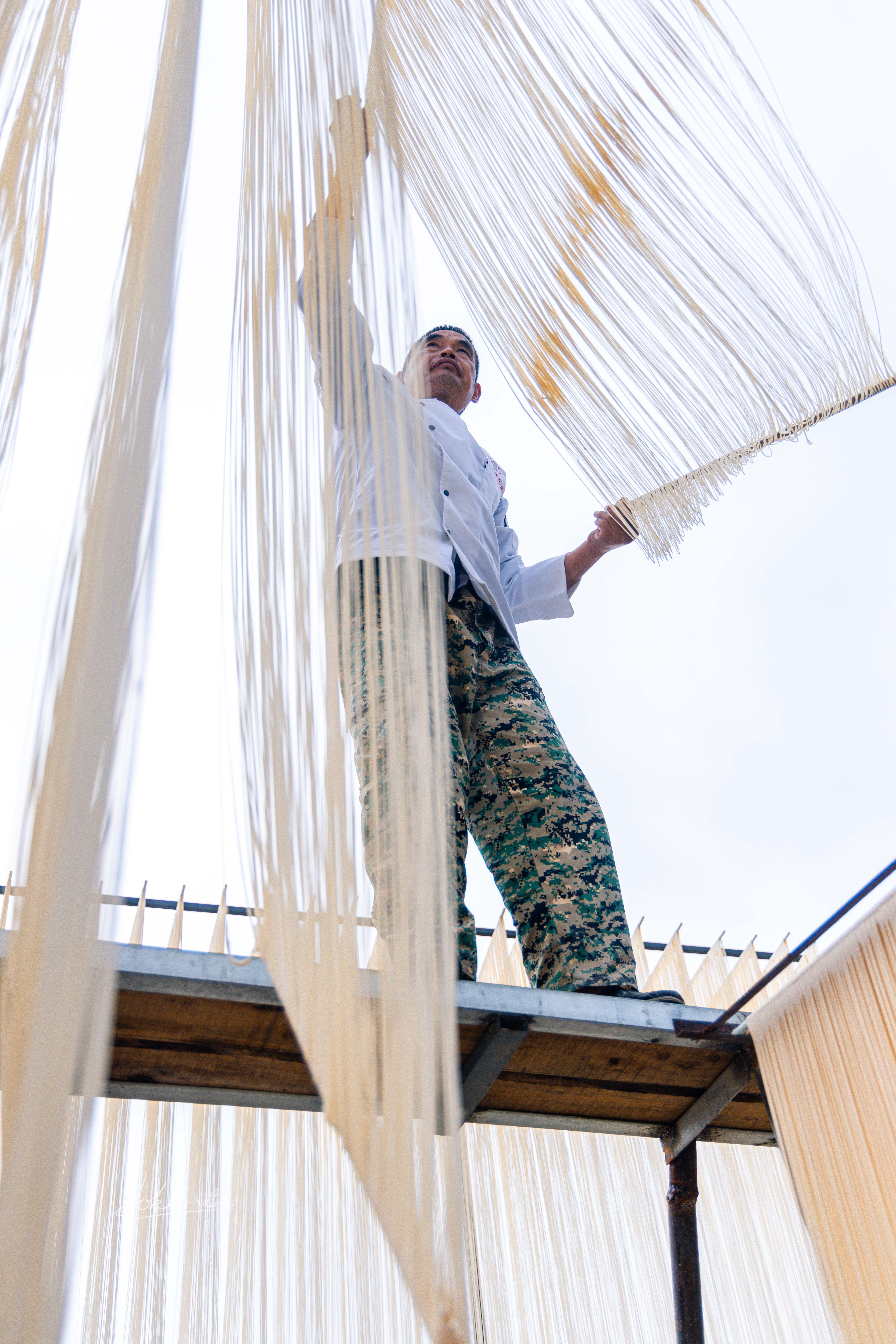 来到挂面村,田园的向日葵开的正好,阳光下师傅们将制作好的挂面晾晒在晾杆上,平时都是吃着煮好的面,今天看到这个场景真是感觉很有意思