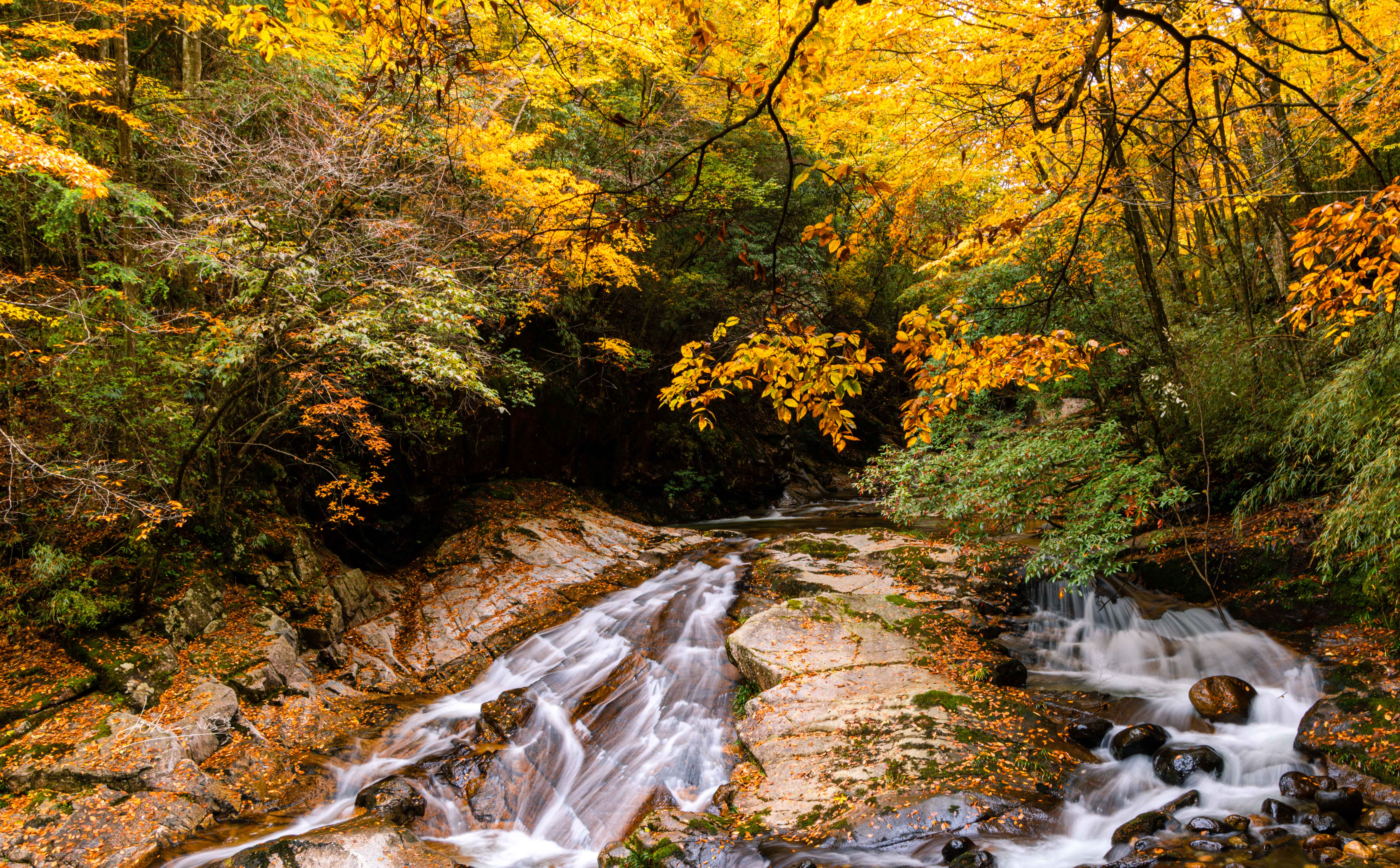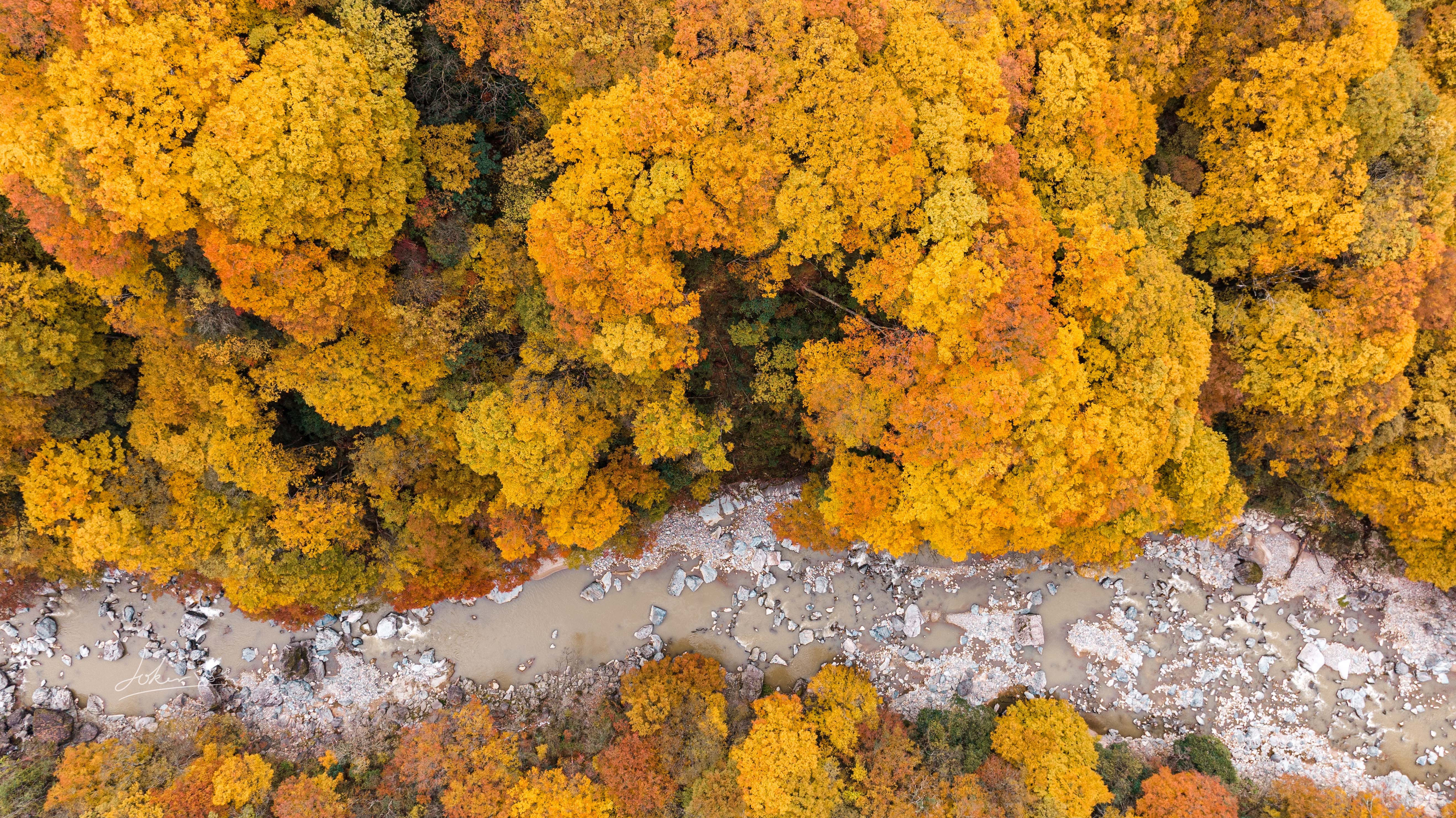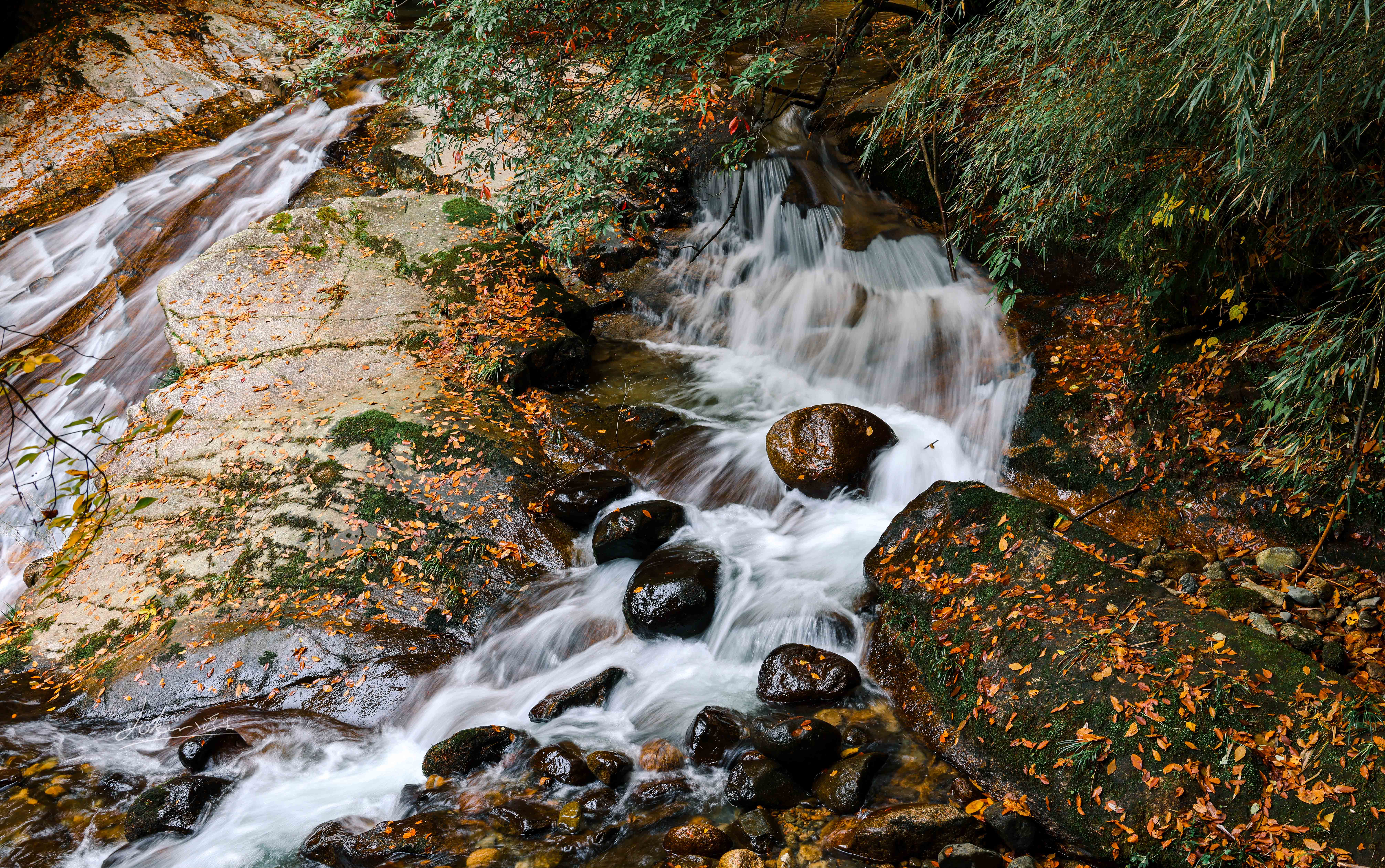 十八月潭最为出彩的地方在于其秋色不仅非常绚丽,同时从山间流下来的溪水,与彩林相映成趣,只是通过双眼去感受都会被这样的色彩所惊叹,通过相机用慢门的拍摄,简简单单的构图就能得到一幅极为出彩的画面。