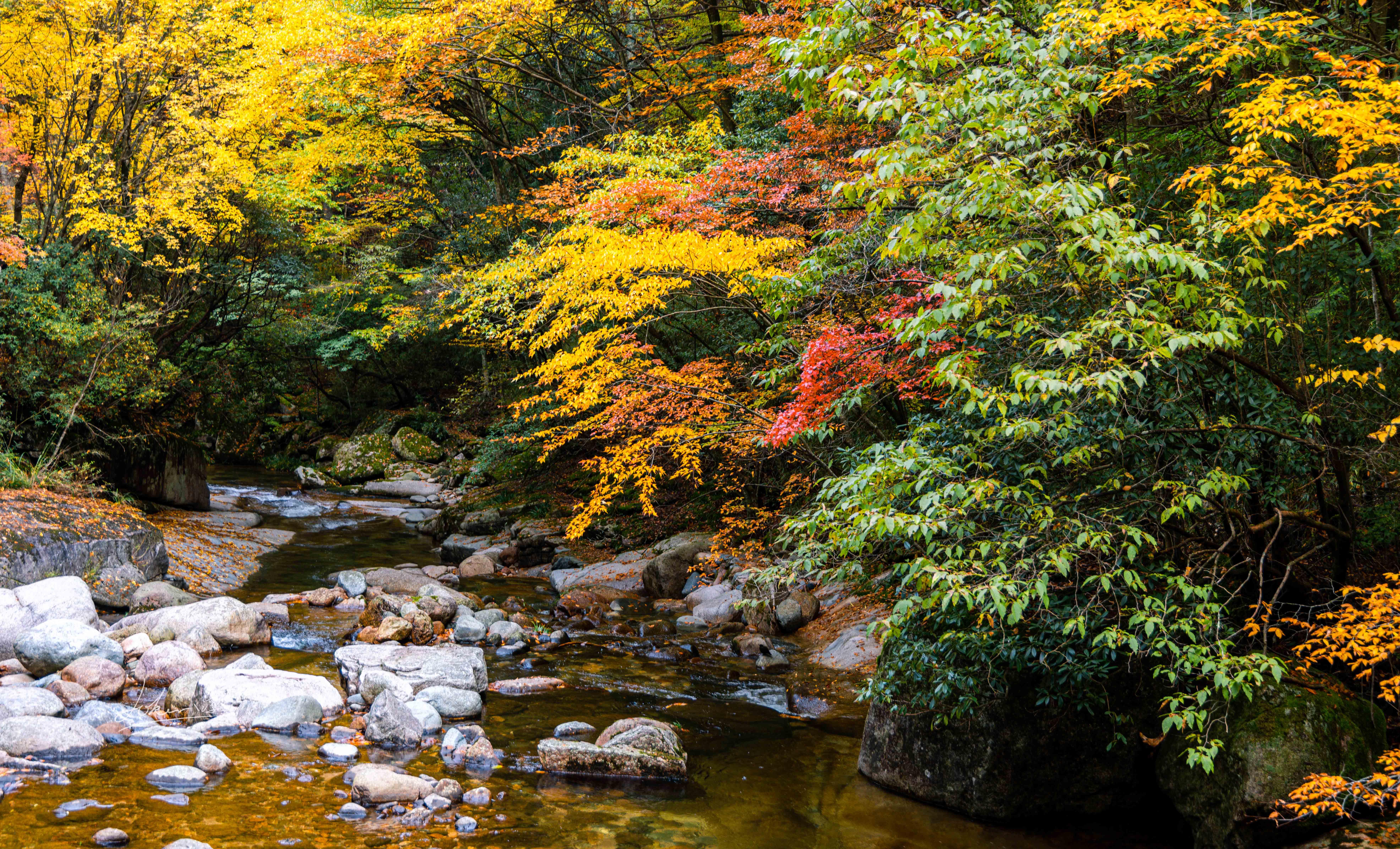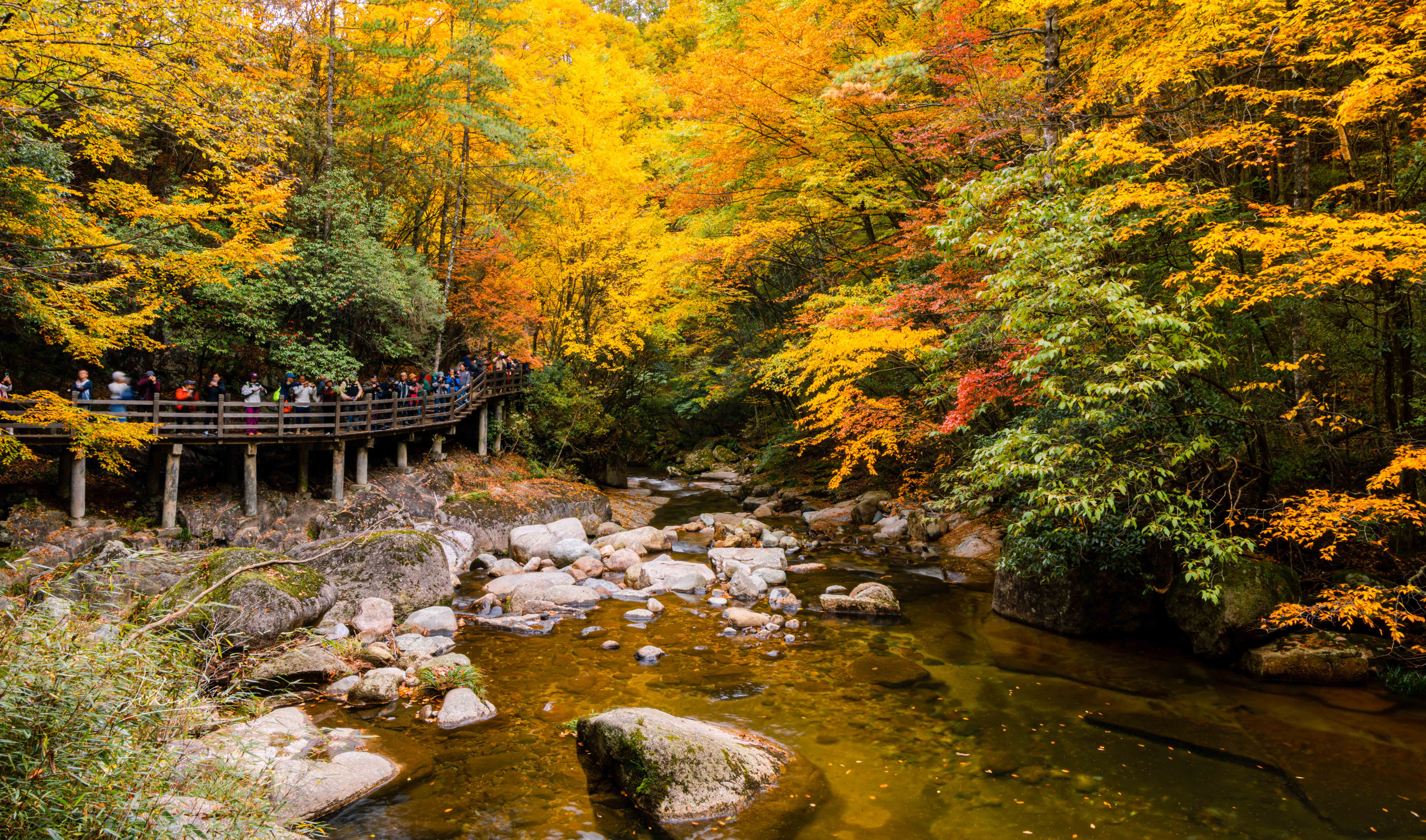 米仓山国家公园位于四川省巴中市南江县,地处秦岭—大巴山腹地,总面积401.5平方公里,森林覆盖率高达97.3%,是一片广袤的天然氧吧。公园四季景色分明 - 春赏山花,夏看山水,秋观红叶,冬咏雾凇。其中最负盛名的是秋日红叶,这里被中国经济林协会评为全国唯一的"中国红叶之乡",与光雾山区域共同构成亚洲最大红叶观赏区。公园内主要有天然画廊、大小兰沟、黑熊沟、香炉山四个可以游览的地方,游览方式是乘景交车到达各景点入口,然后步行游览的方式。