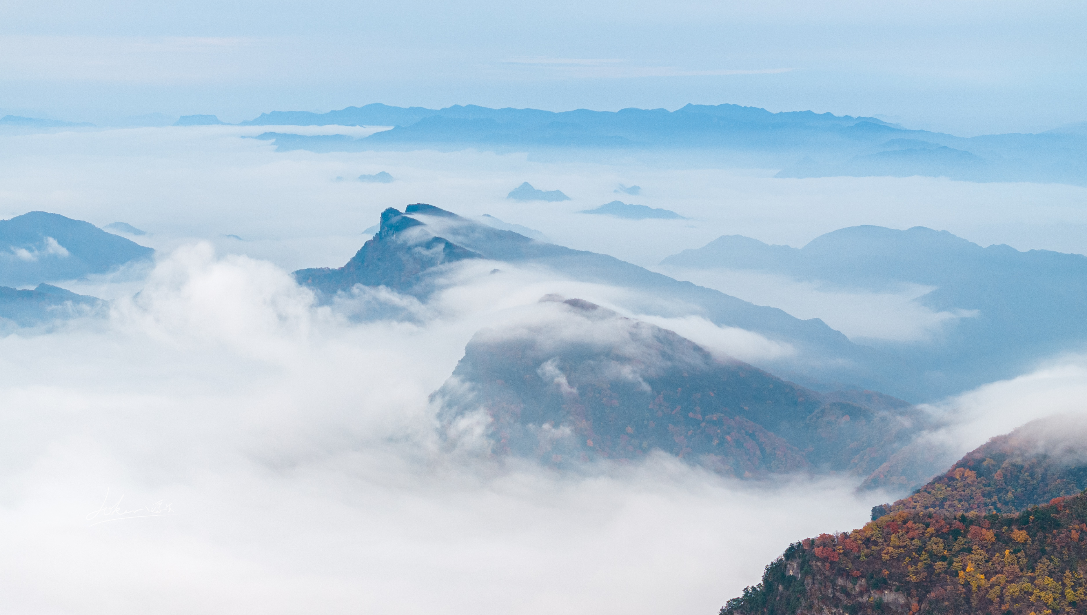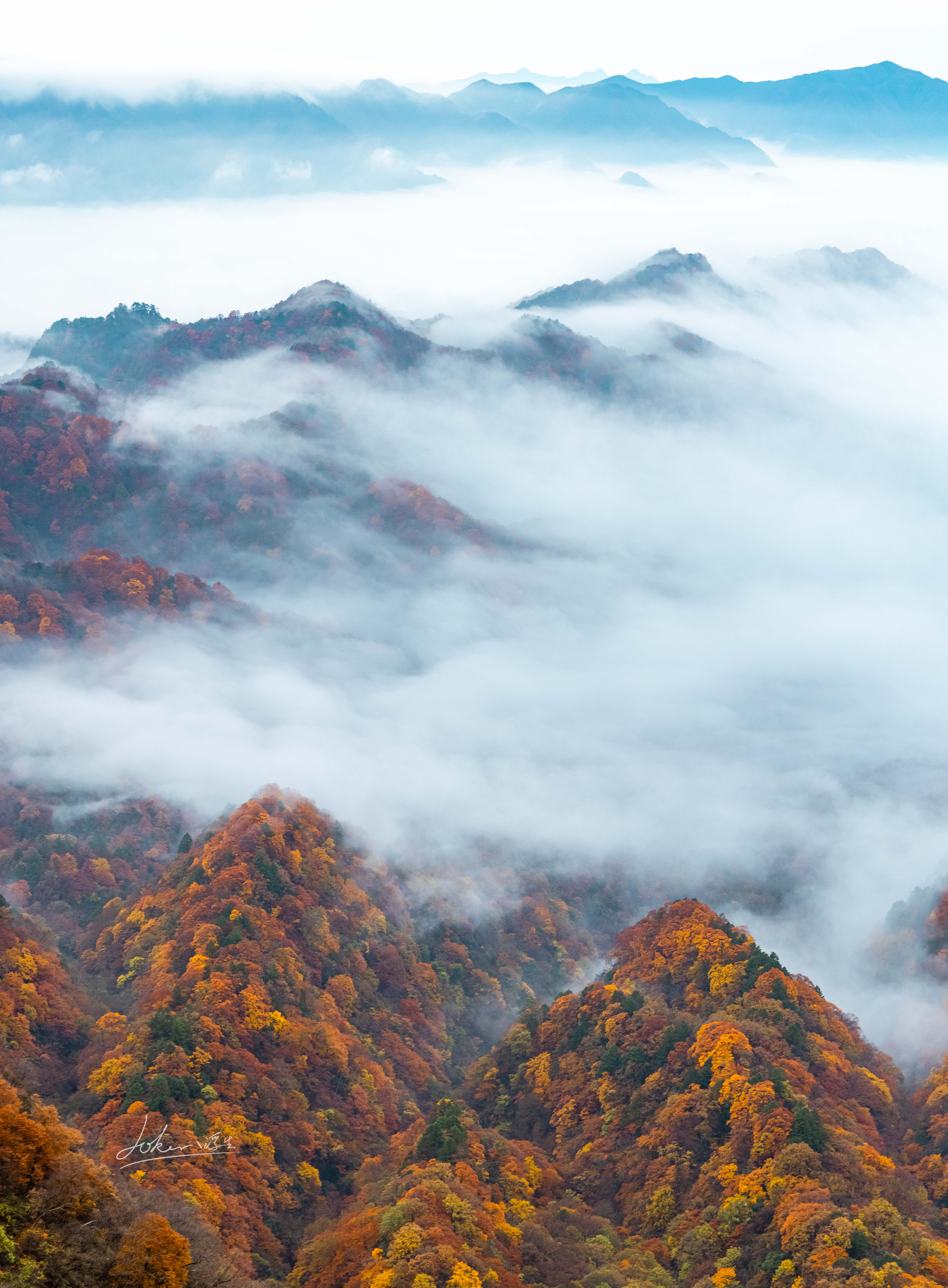 对于米仓山而言,由于我们的摄影团是安排住在景区内唯一的酒店,所以更加方便了我们傍晚有充裕的时间,同时清晨还能错峰游玩,而这其中,个人最为推荐的便是清晨有晨雾看晨景的时候,不亚于川西牛背山的云瀑,虽说没有横断山脉的雪山群,但是在秋色的加持下,云波诡谲的画面真的如仙境一般