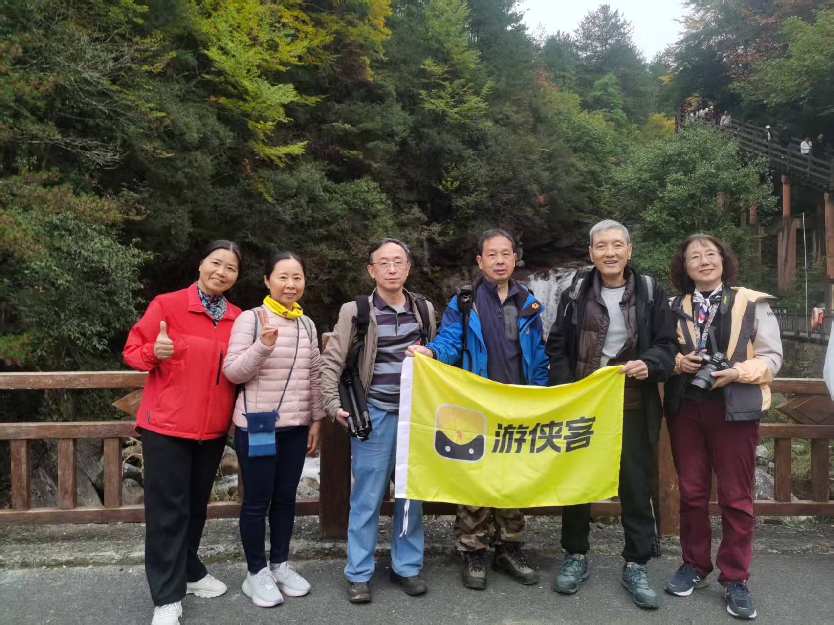 一路再向下,到婚纱瀑布时,秋色已经很淡了,只有零星的黄叶。走到下面后,我们的大巴车来接我们回到了南江县城入住,结束了今天的行程。