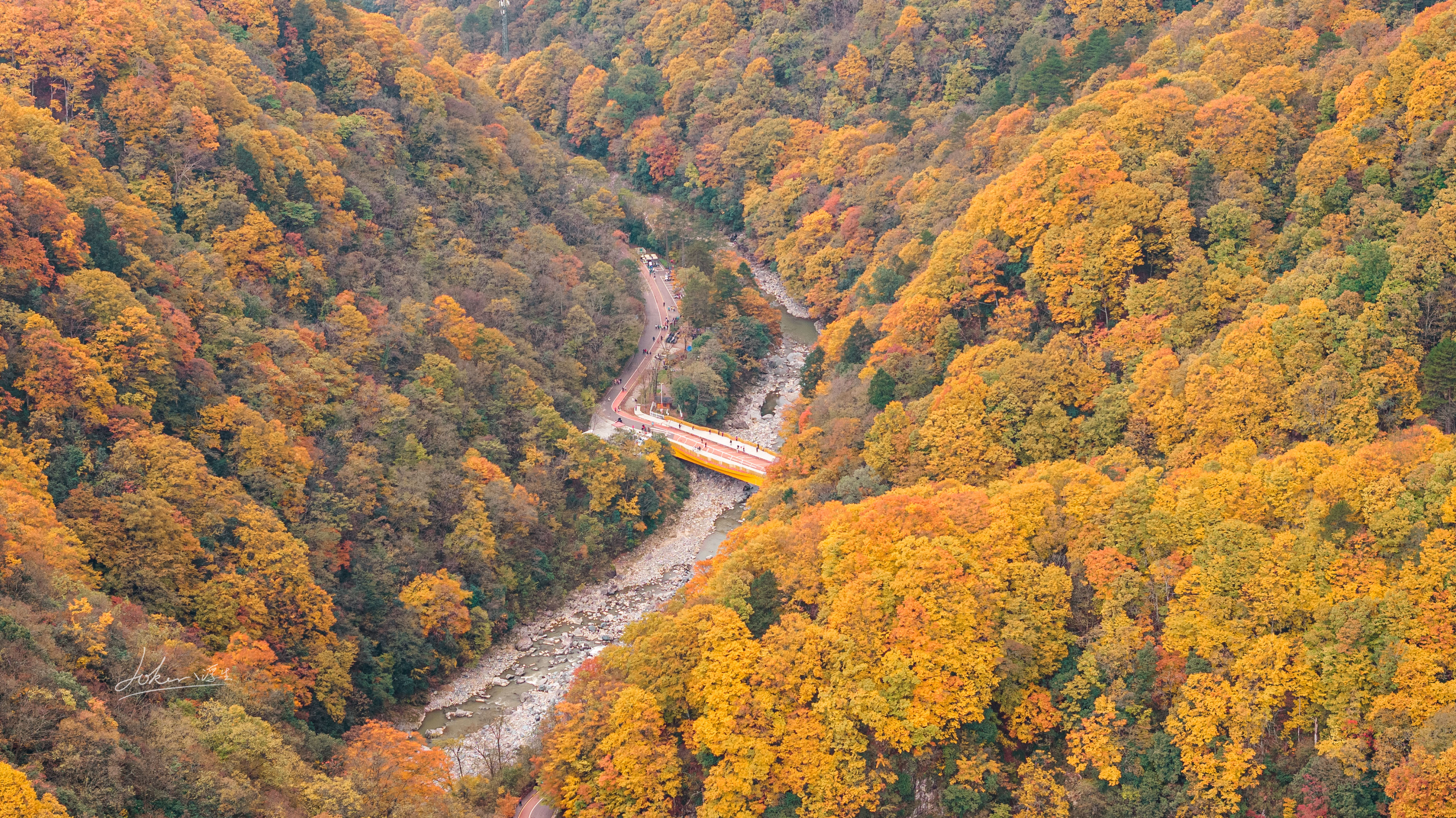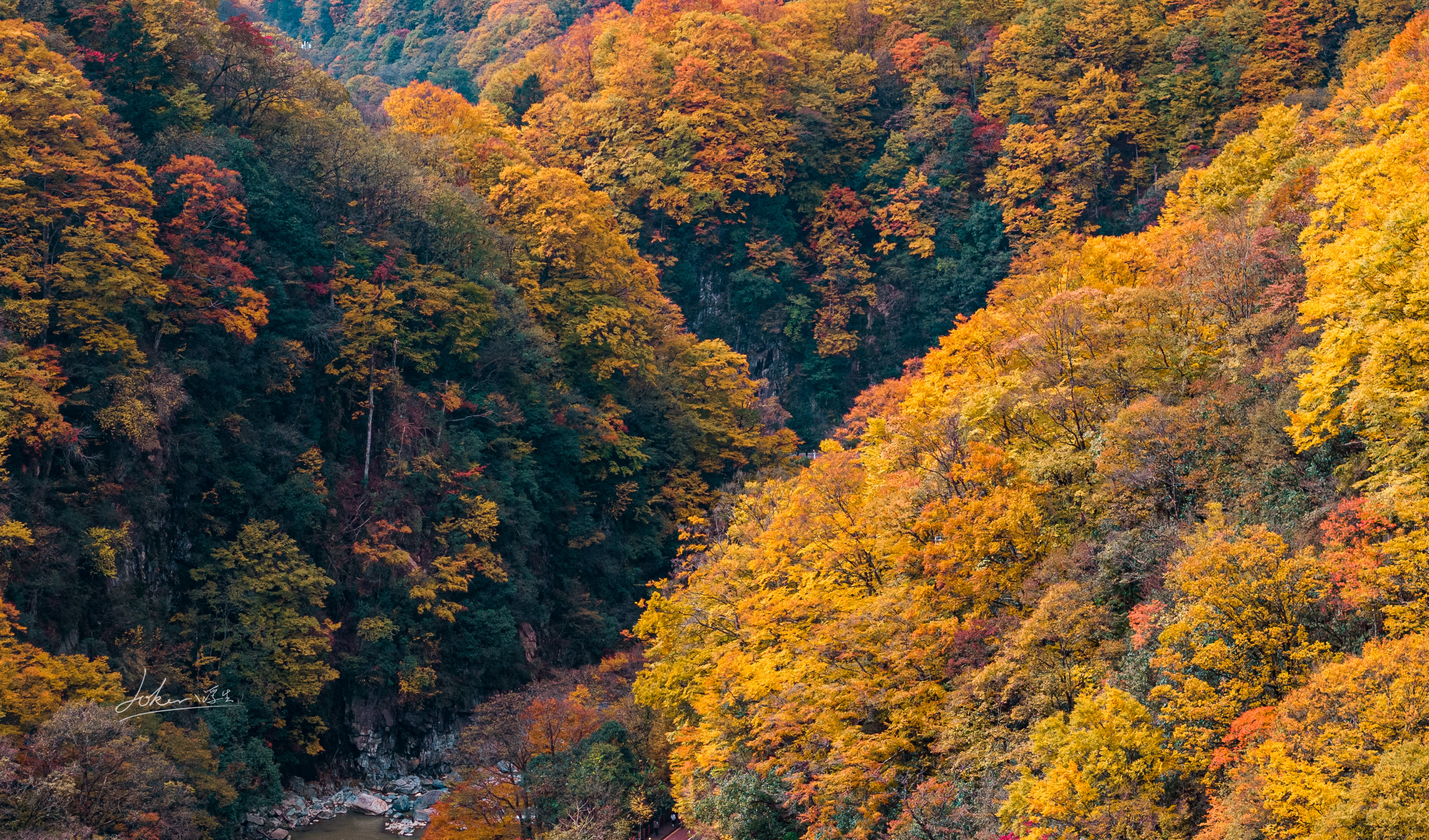 十八月潭的游览很轻松,我们乘坐大巴车达到十八月潭最顶,下车后从上往下一路行摄游览,红叶和流水相映衬的景色是十八月潭的一个特色,在拍摄时要注意低视角满门拍摄,遇到强光时要使用减光镜,可以拍到流水相丝绢一样丝滑。由于如今手机拍摄的功能越来越强大,手机慢门其算法在这里非常的实用,轻而易举就能在不用脚架的辅助下拍出不太输于相机的慢门画面