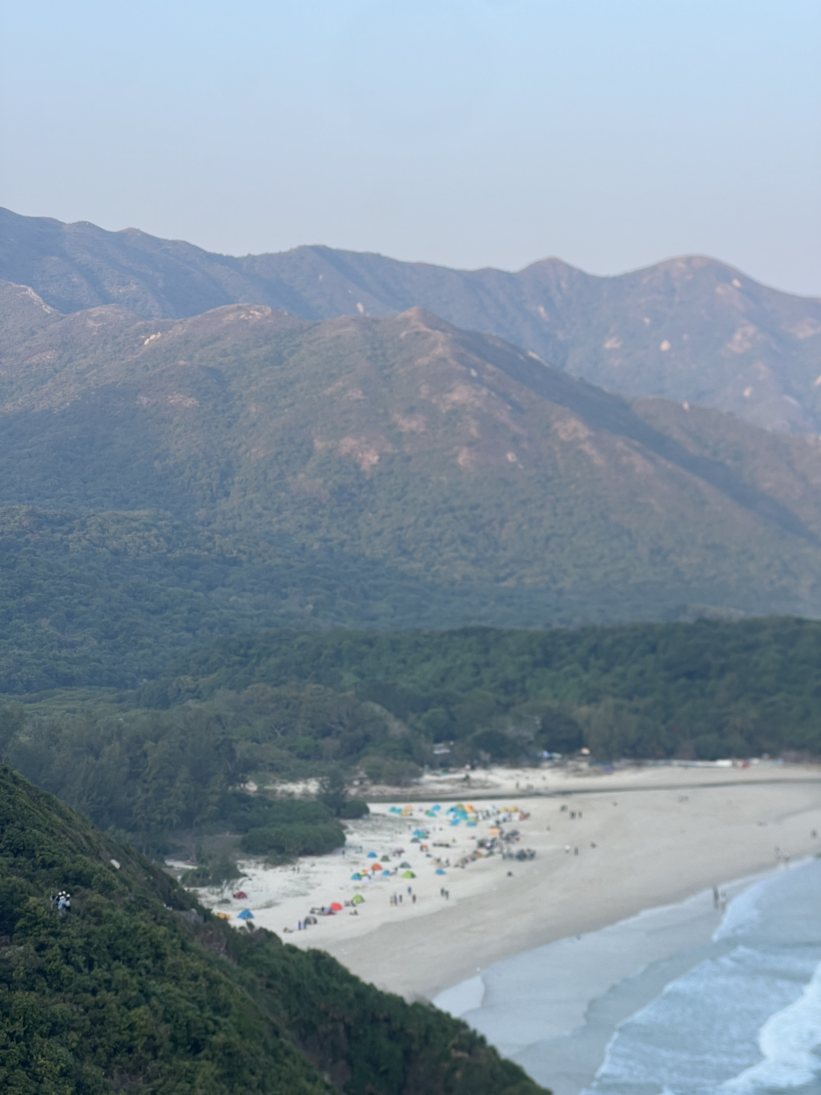 隔天一早出发,攀爬西湾村314米陡坡时有些费力,登顶后俯瞰整片海湾,青绿海水配着沙滩,视野超开阔,累意全消。