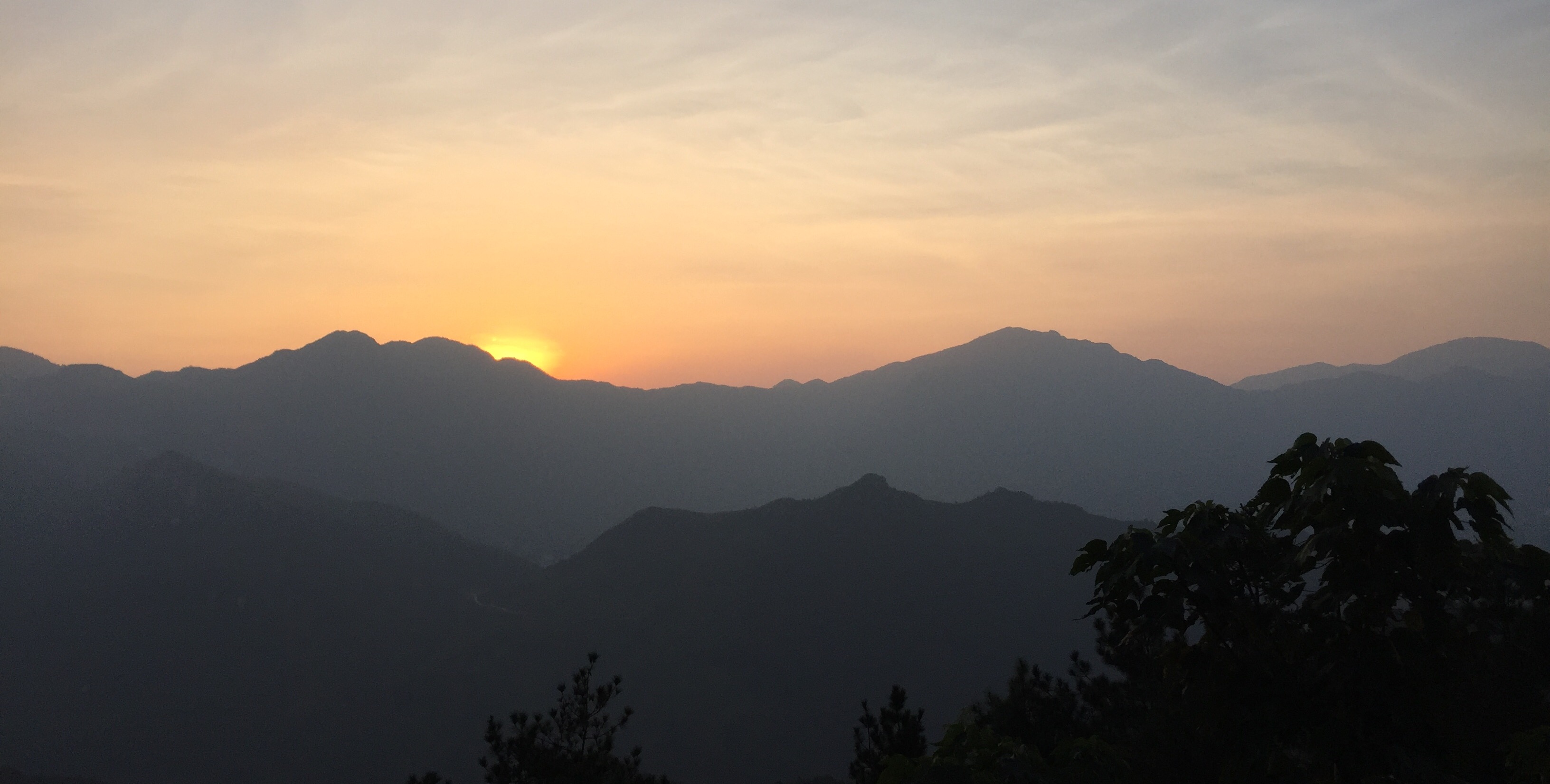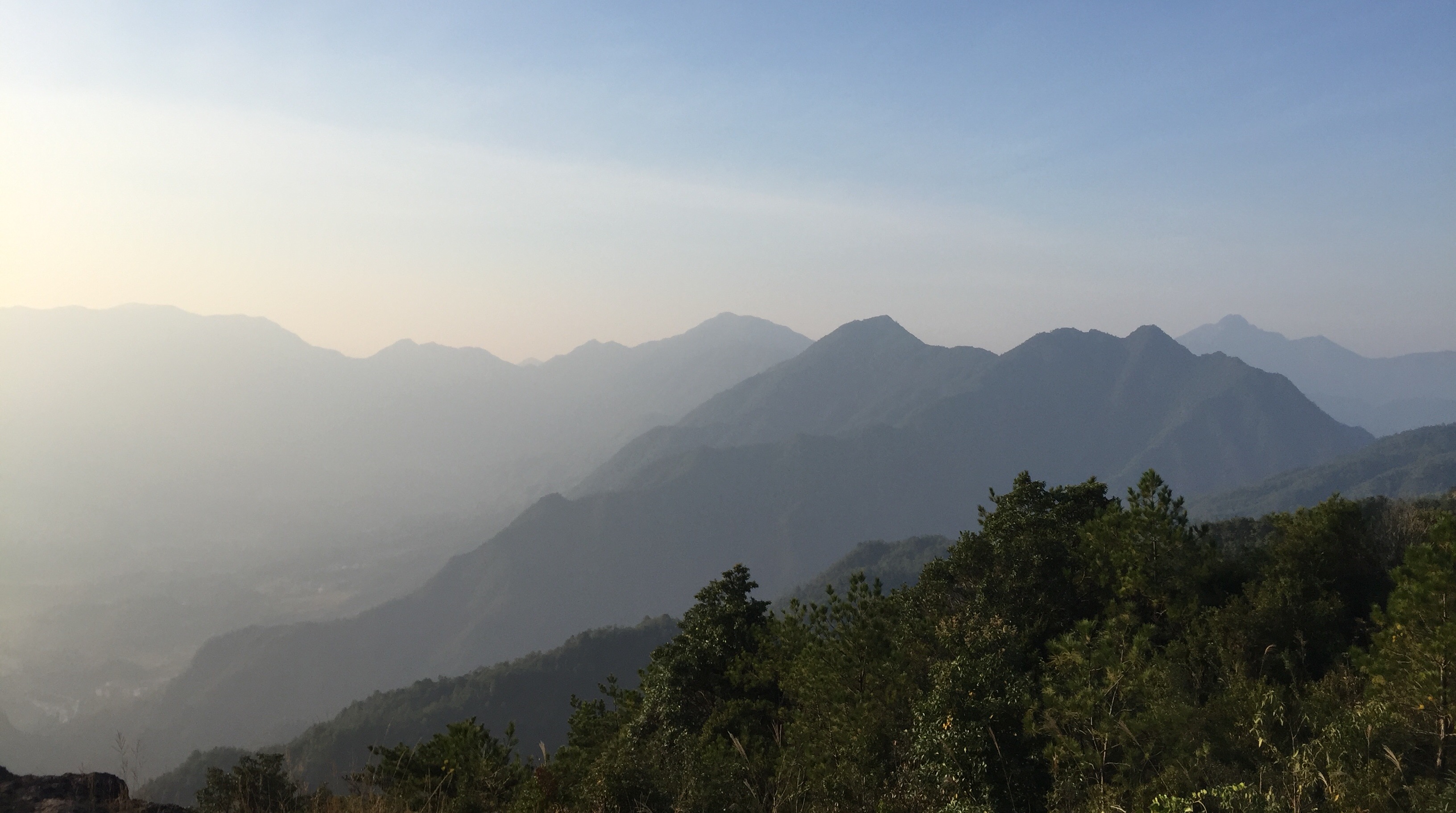 等不及到达山顶,我们偶尔在视野开阔处停下来,安静地欣赏黎明后山中的热情。