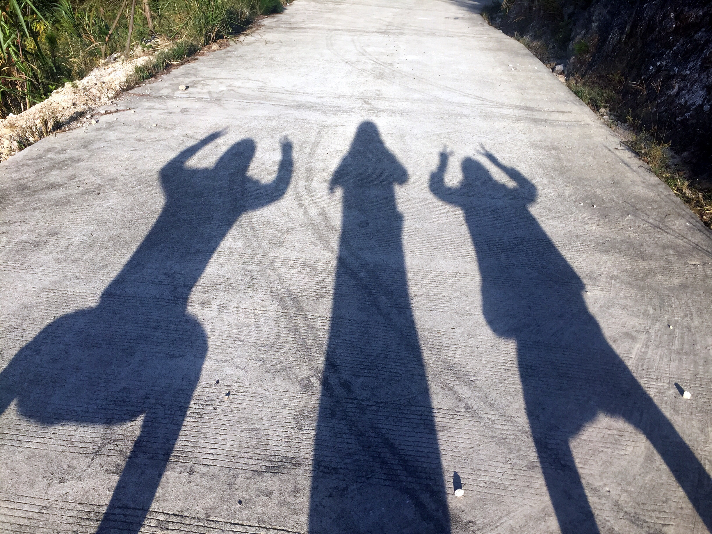 三个人玩影子也可以充满乐趣,可怜的我,在中间被他们夹击。