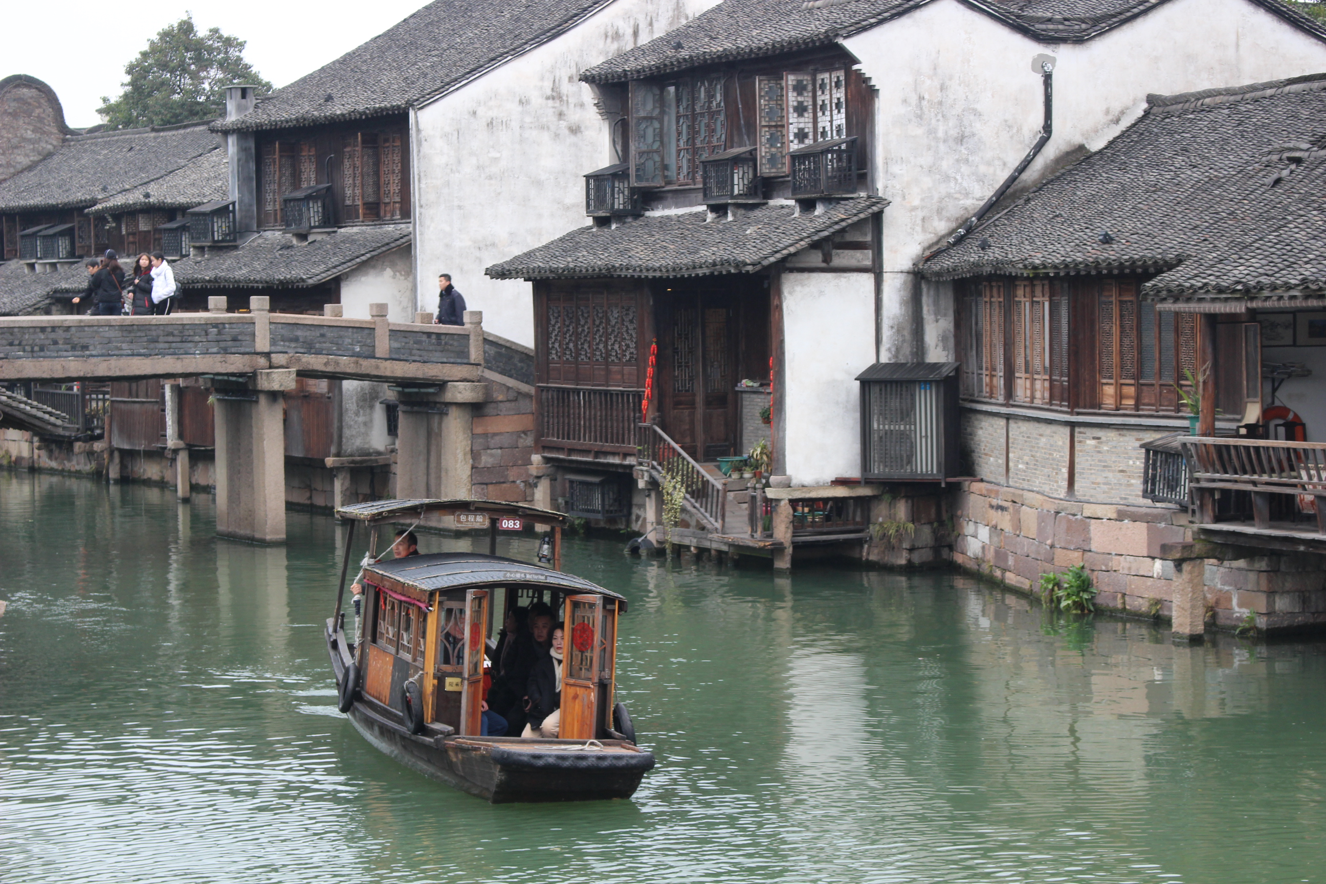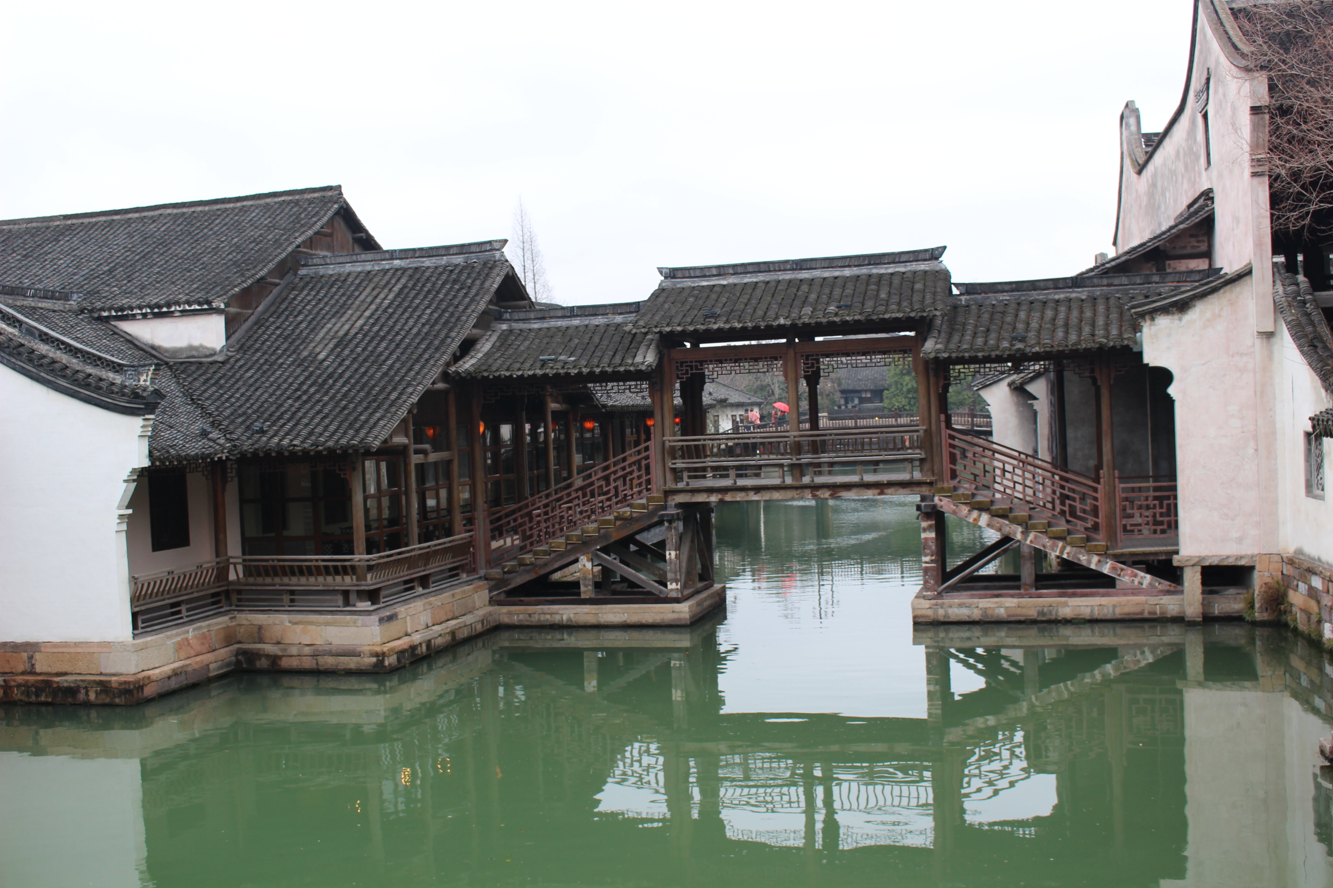 轻烟漠漠雨疏疏, 碧瓦朱甍照水隅。幸有园林依燕第, 不妨蓑笠钓鸳湖。渔歌欸乃声高下, 远树溟濛色有无。徒倚阑干衫袖冷, 令人归兴忆莼鲈。遍看桥梁下,人家尽枕河。河网密布的乌镇西栅,悠悠荡过水面的摇橹船。最后的枕水人家乌镇遇上正月十五水灯节,沉静的古镇春梅初绽,张灯结彩。白墙乌瓦也焕发出不一样的色彩。